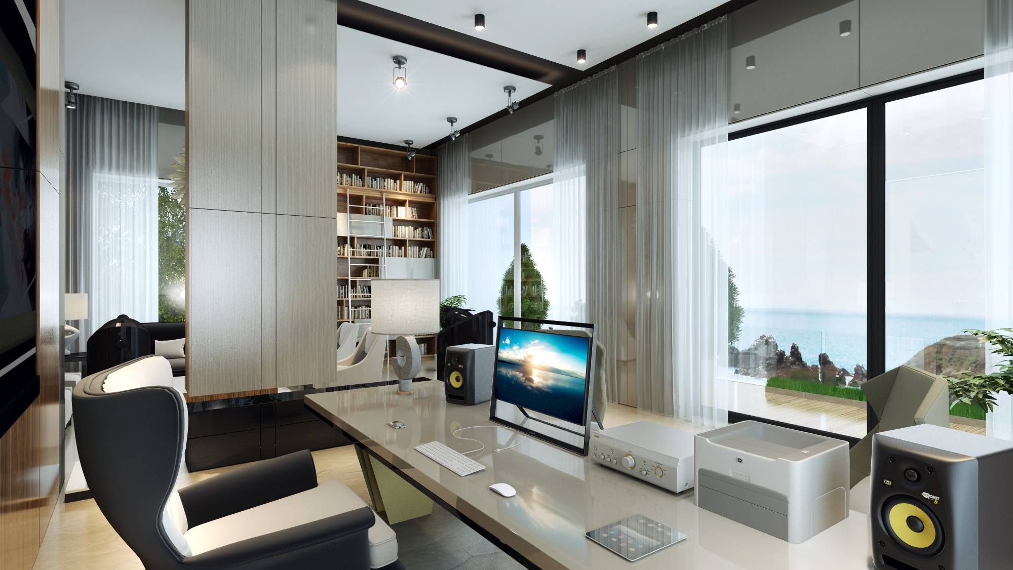 Спальня с видом на море и кабинетом