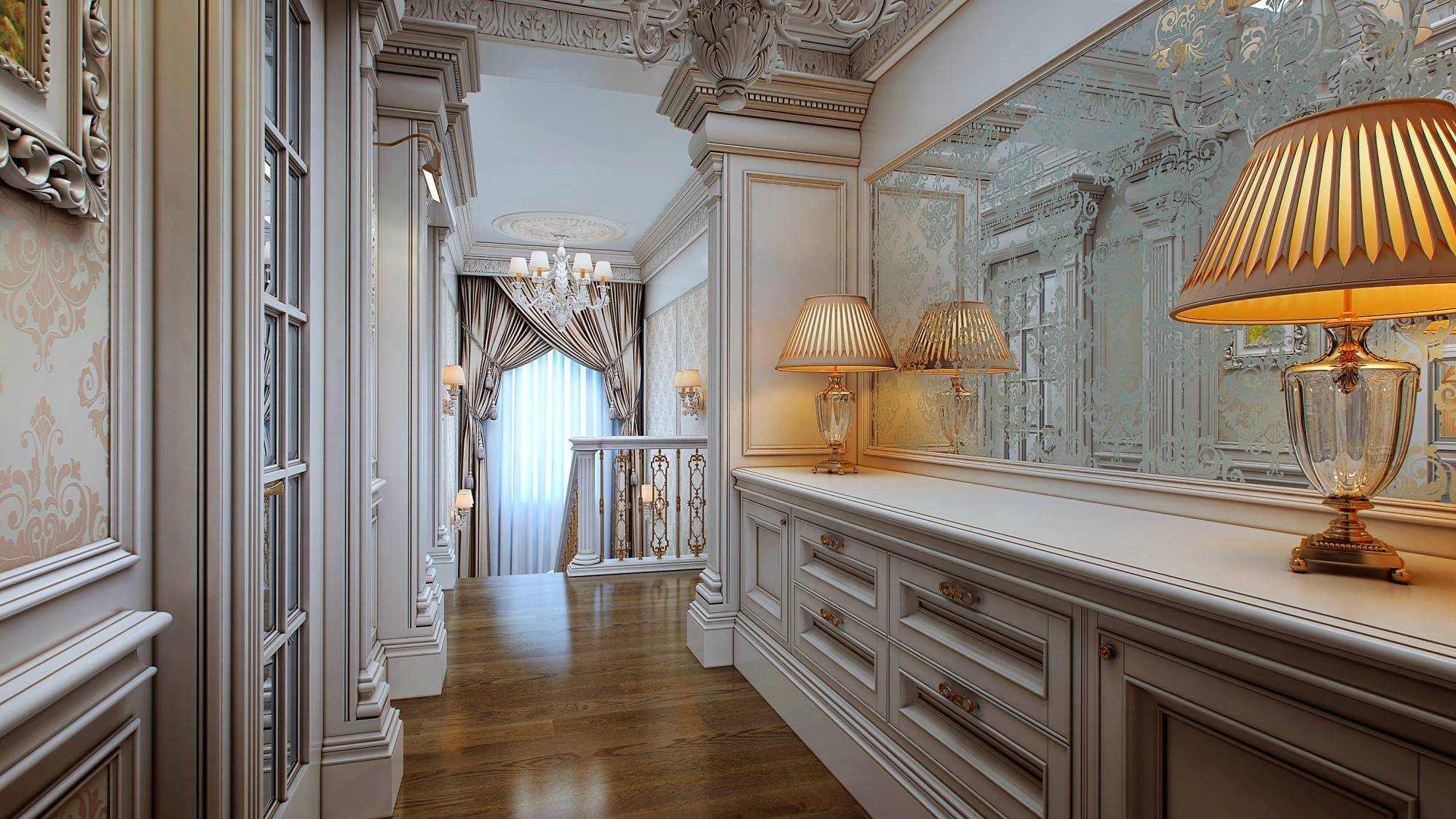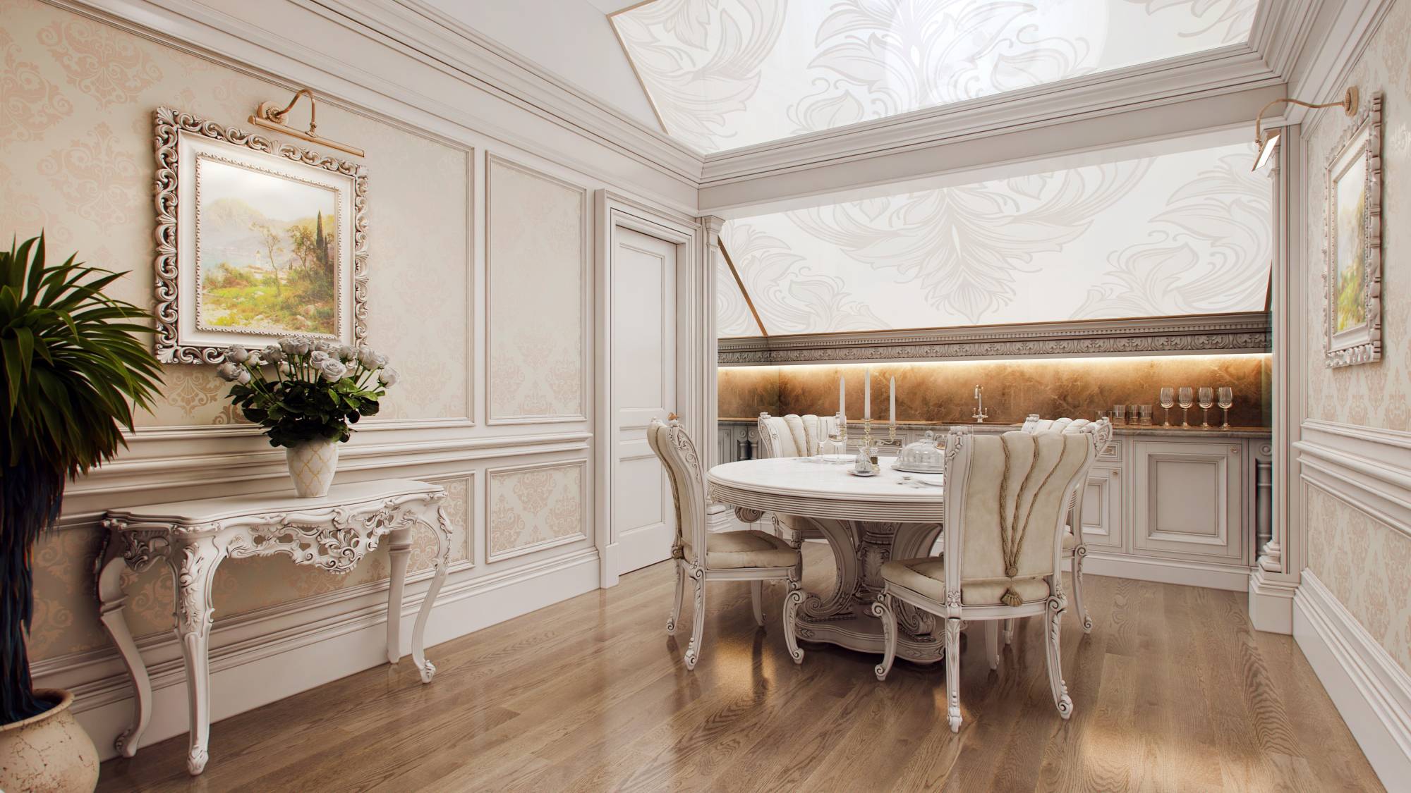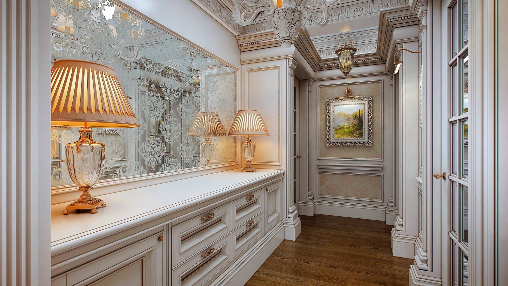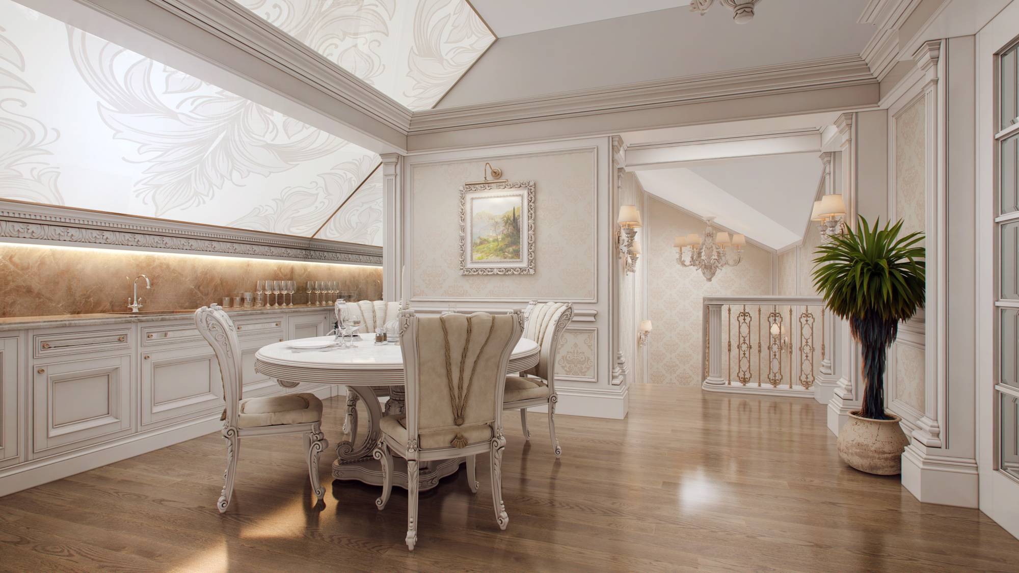 Проект разработан для семьи, предпочитающей традиционное оформление новомодным тенденциям. Респектабельная, изысканная классика создает в домашней обстановке ощущение стабильности и умиротворения, которые особенно ценятся в повседневной суете.