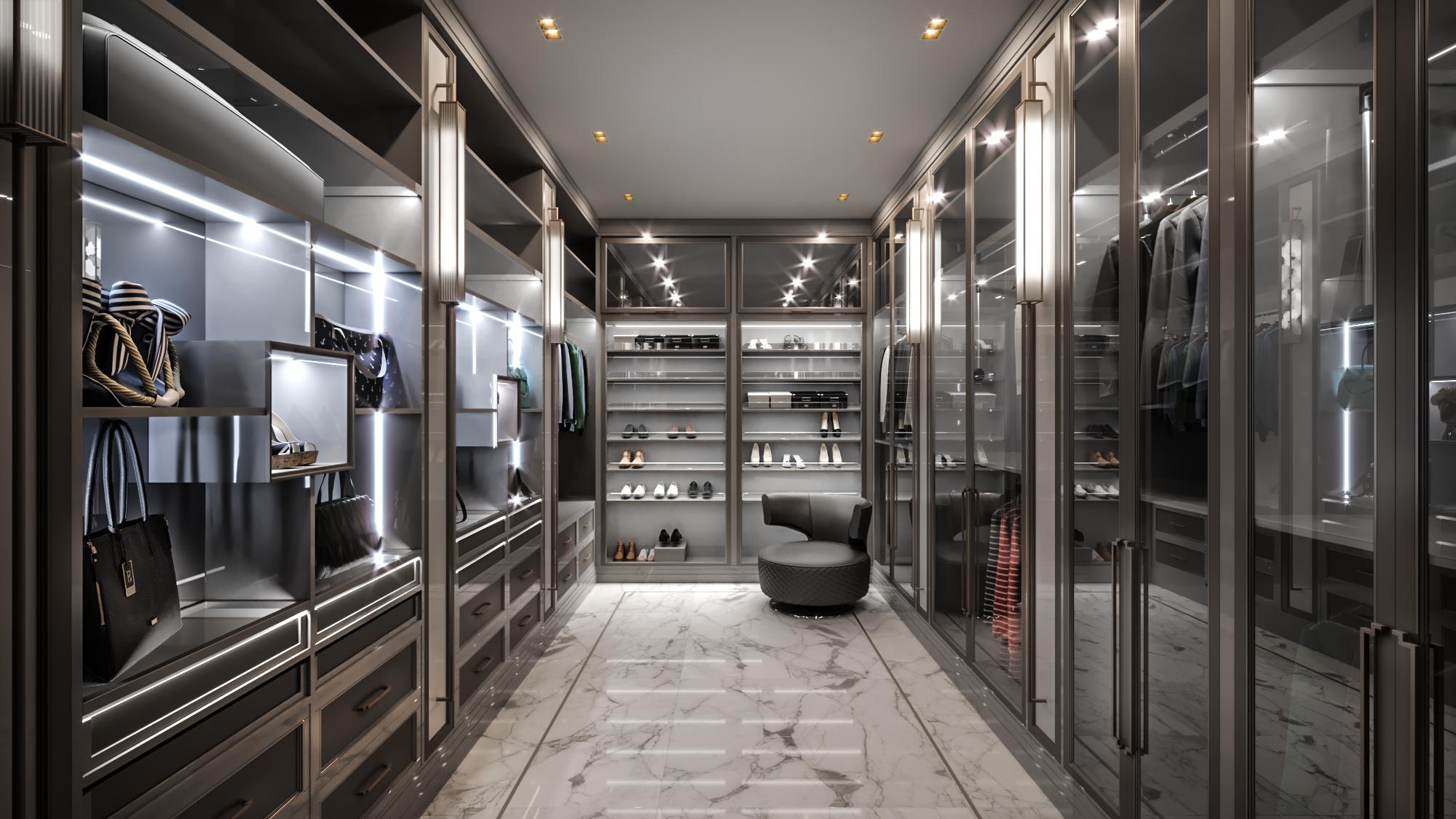 - внутри шкафов организована собственная система встроенной подсветки полок, отдельных секций, выдвижных ящиков;