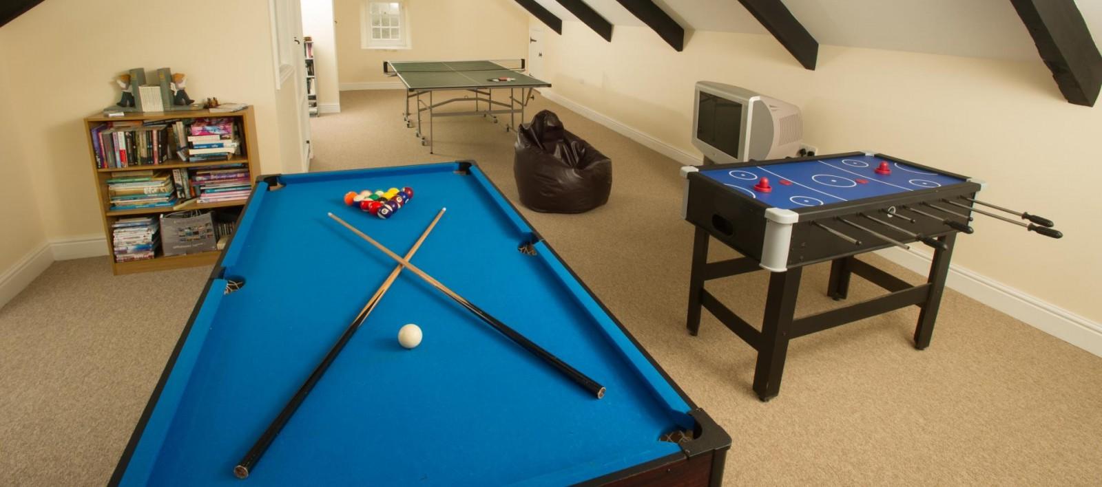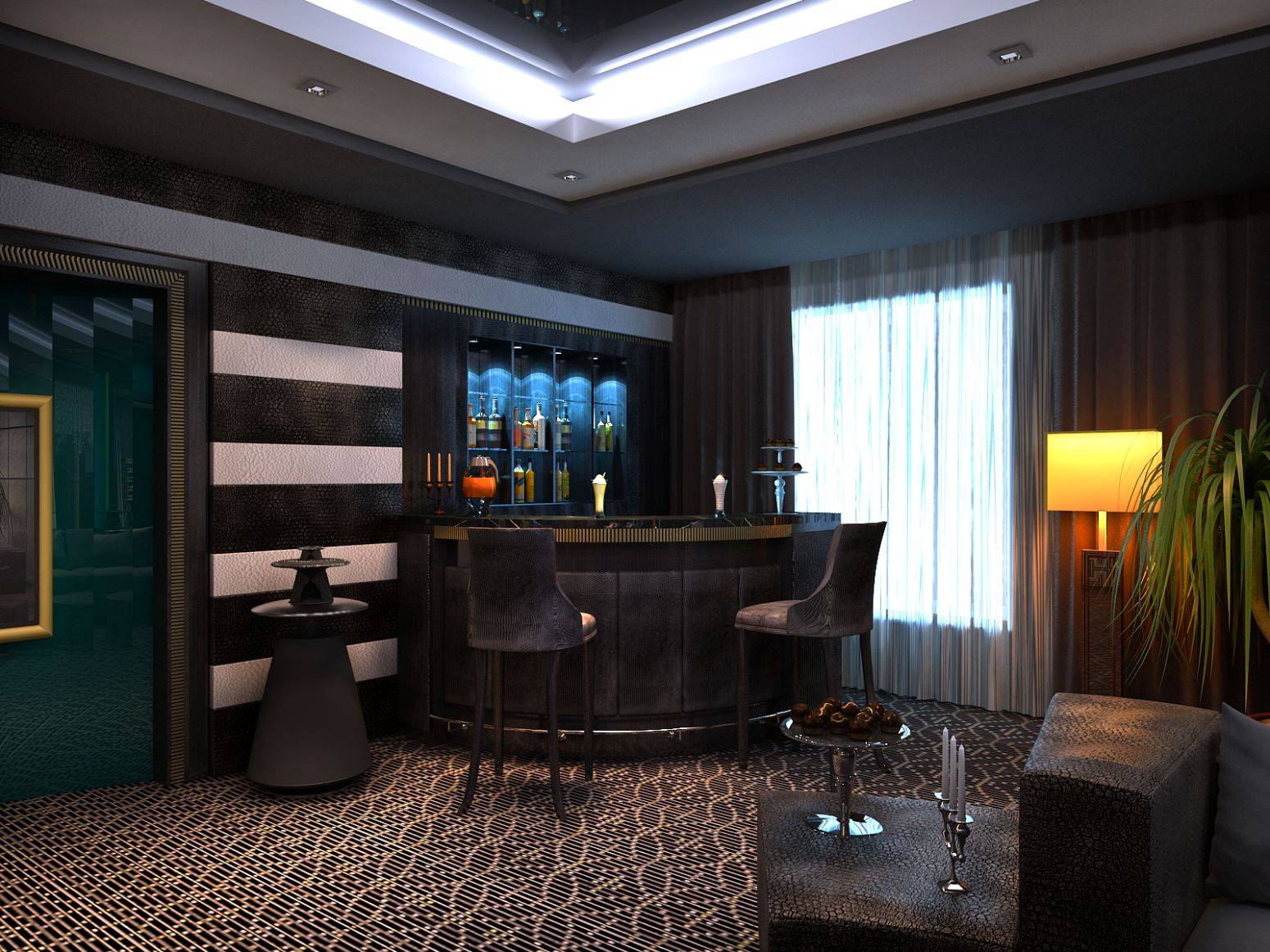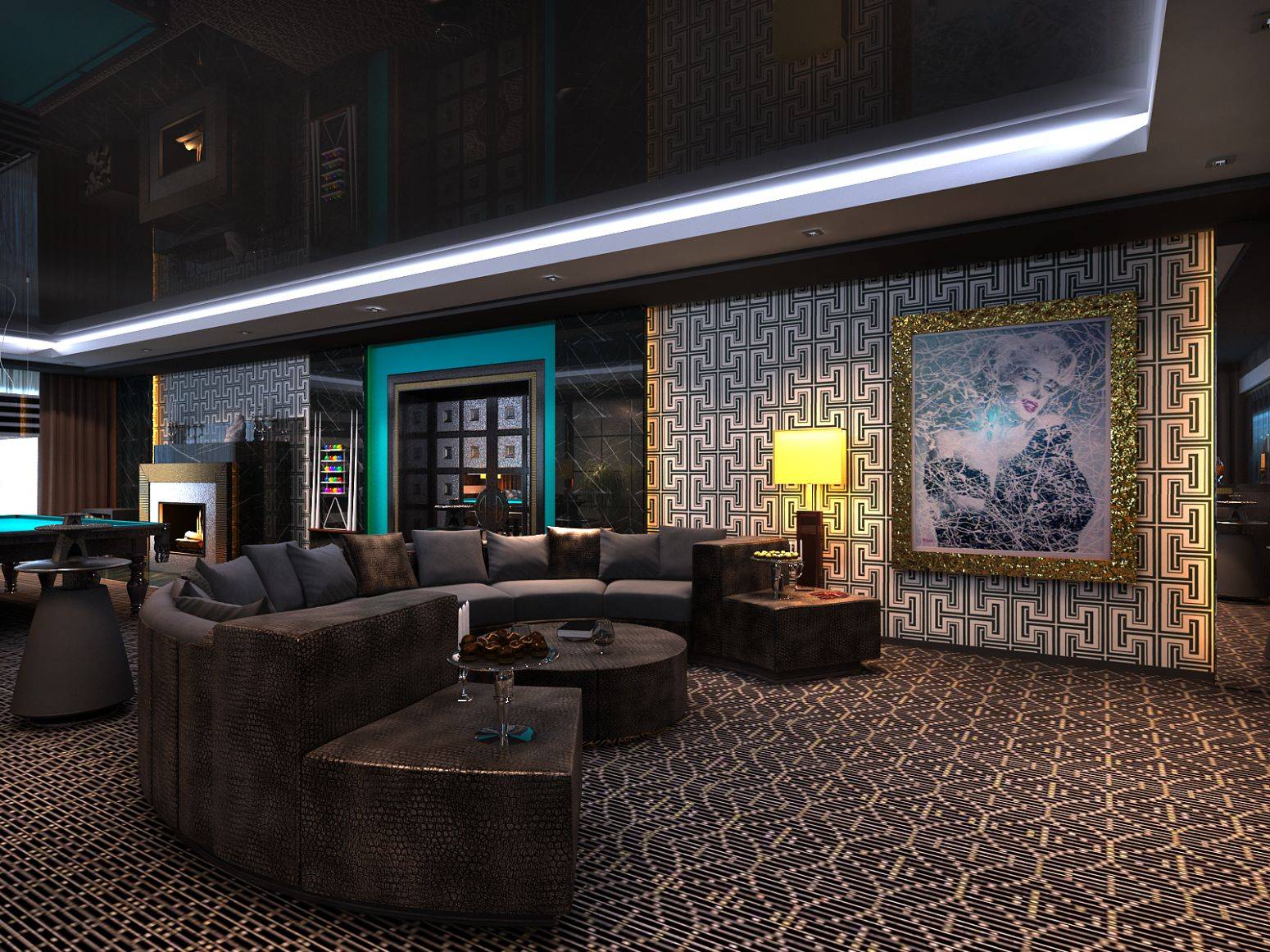 Помещение включает в себя бильярдный стол, домашний кинотеатр, барную стойку и комфортную диванную зону. Обстановка уже сама по себе располагает к отдыху.