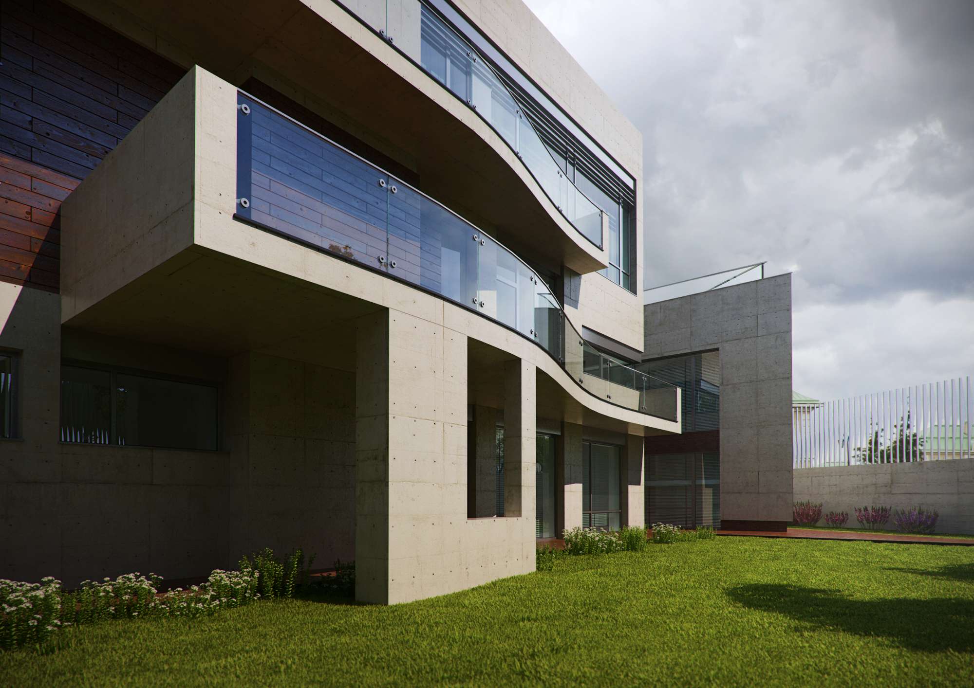 Во внешнем оформлении очень удачно контрастирует легкое стекло и сплошной массивный бетон – именно так и выглядит передовая архитектура.