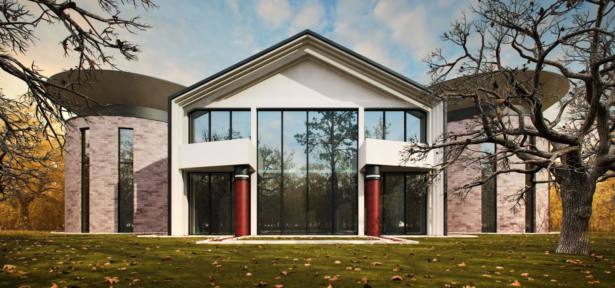 Эпатажный, наделенный впечатляющими размерами загородный частный дом – яркий пример ранней эпохи постмодернизма.