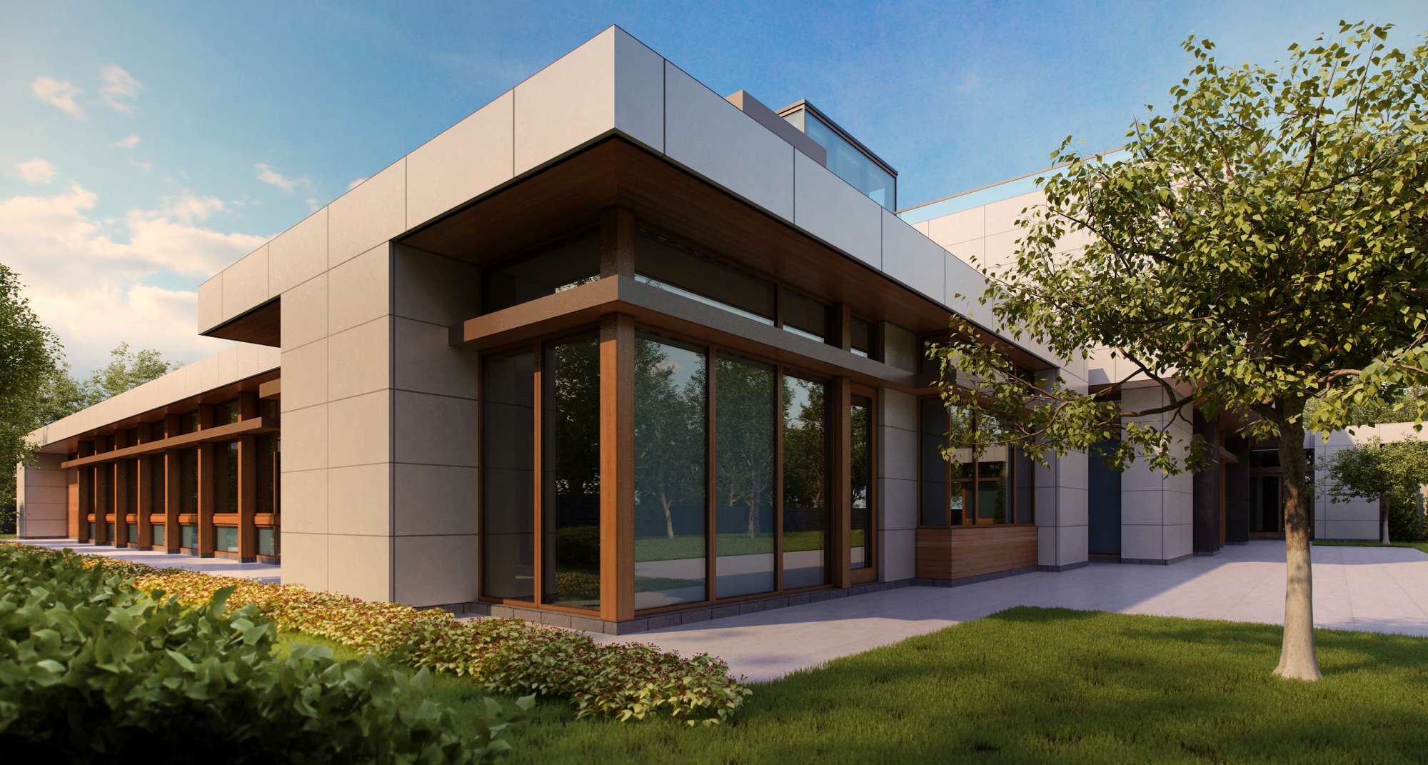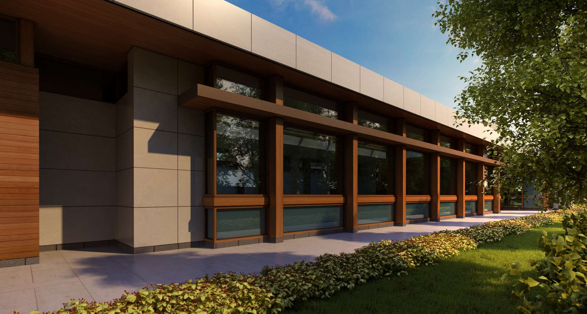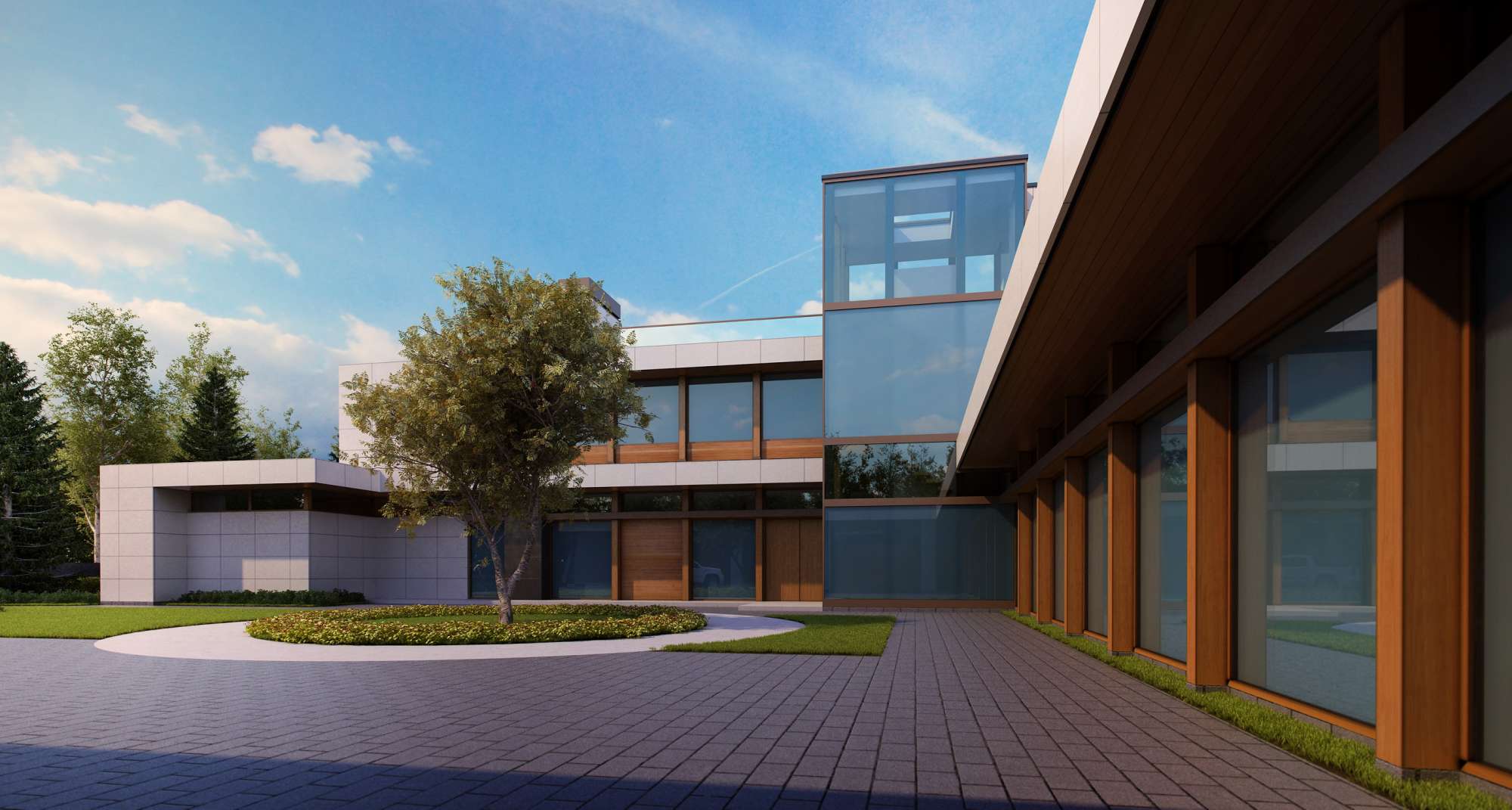 Современные фасады одноэтажного дома выполнены в стиле позднего модернизма, а также минимализма. Его архитектурный язык включает в себя такие характеристики как прямолинейность, прямоугольность и ортогональность – четырехстороннее ориентирование.