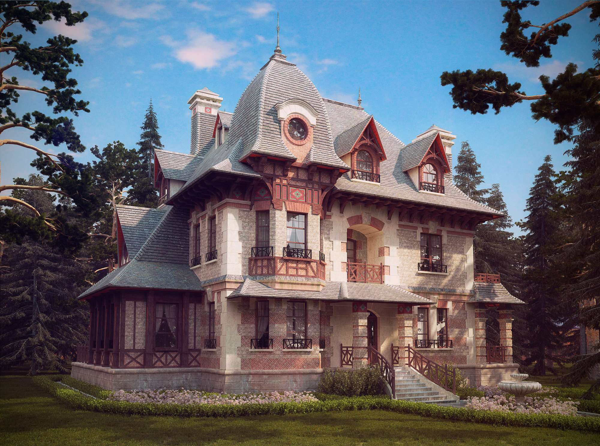 Терраса, веранда, множество балкончиков увеличивают полезную площадь дома, а также предоставляют чудесные места для отдыха. Благодаря им дом становится еще более практичным и привлекательным.