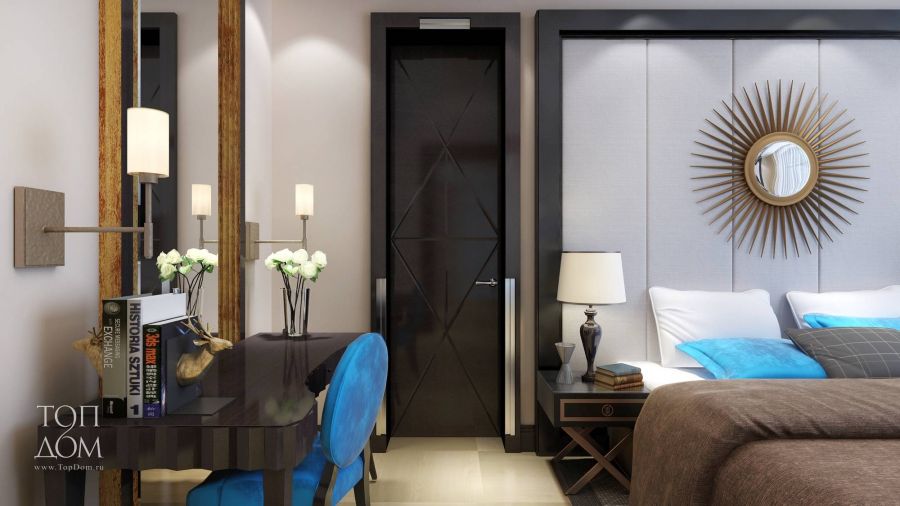 Спальни, оформленные в стиле арт-деко, – довольно сложная для разработки и реализации задача. В рамках эклектичного решения нужно грамотно совместить текстуры, цвета, меблировку и аксессуары, создать презентабельное, эффектное и уютное жилое пространство для отдыха. Лучшие примеры авторского дизайна спальни в этой и других стилистиках смотрите в галерее проектов «ТопДом».