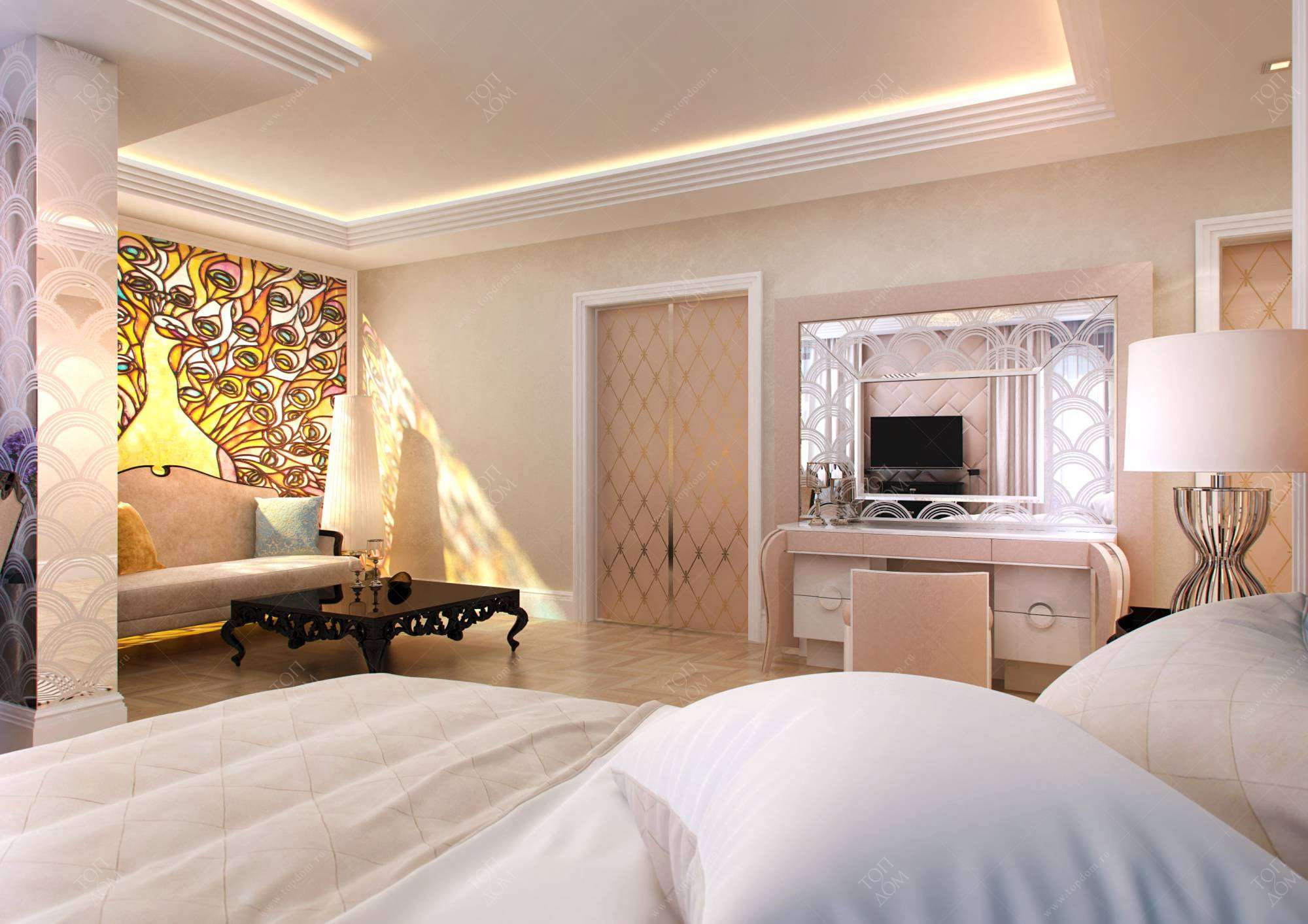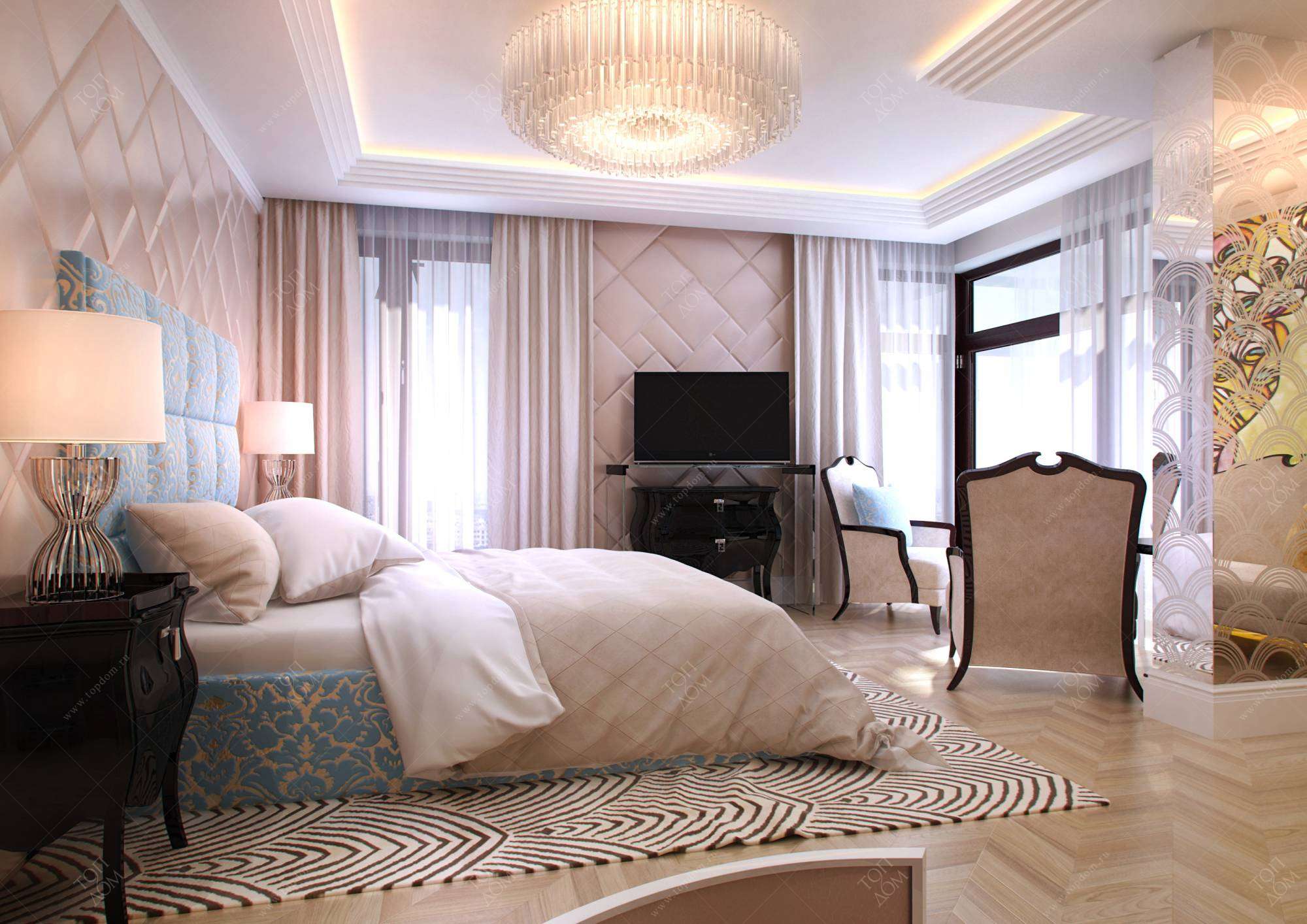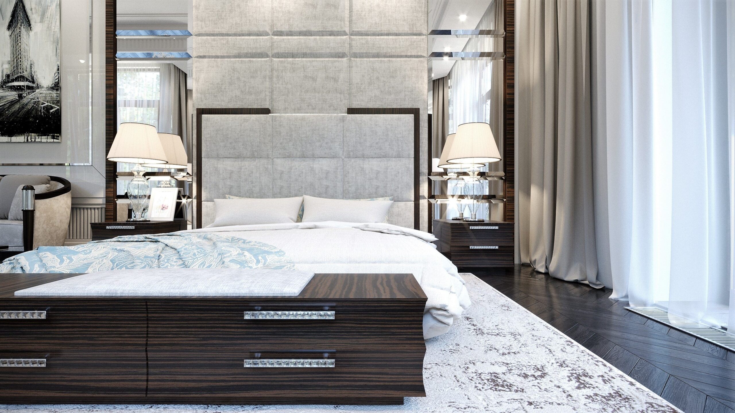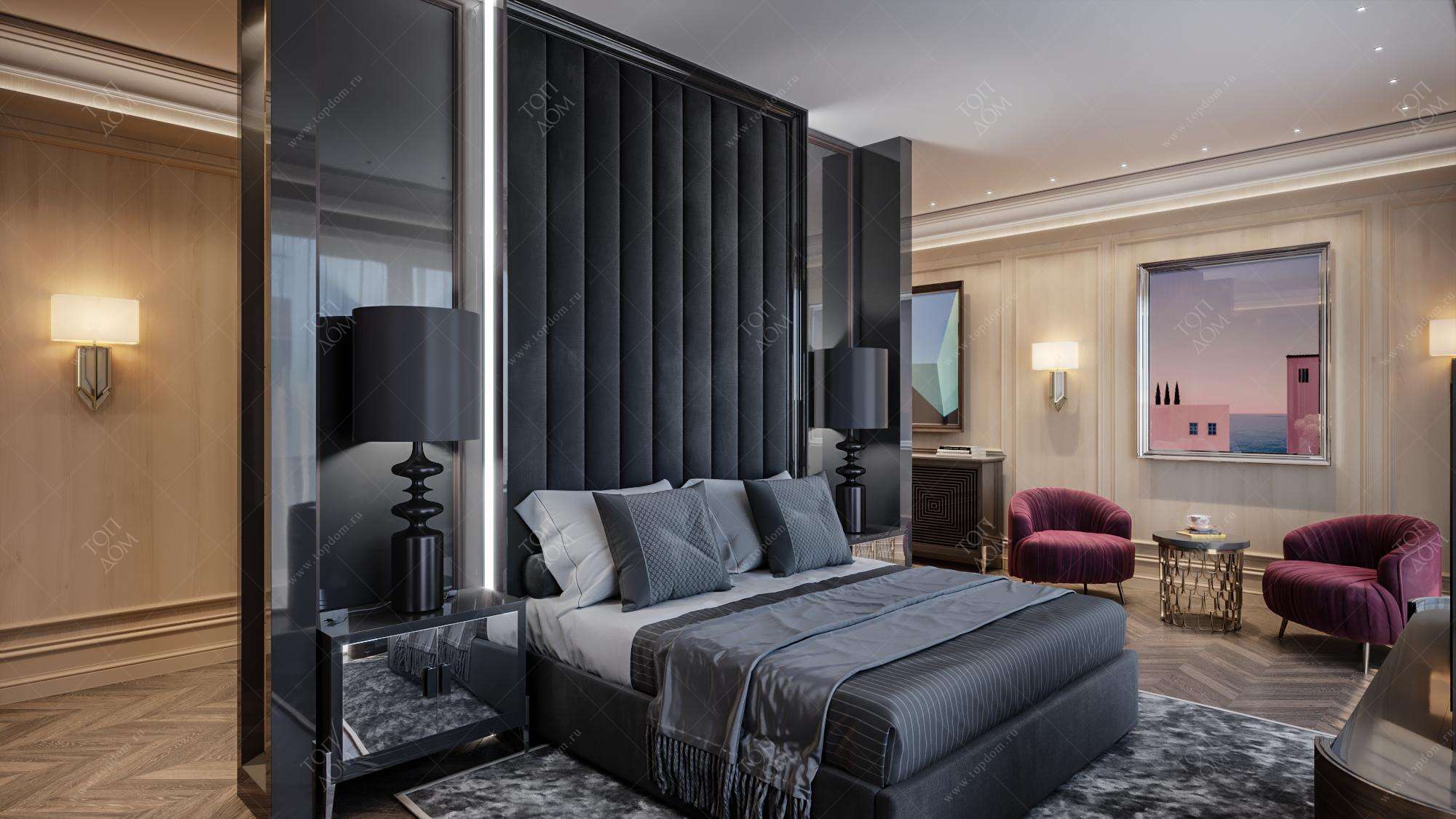 Артистичный, смелый и нешаблонный стиль арт-деко в интерьере используют в проектировании апартаментов премиального уровня. Умное сочетание роскоши и комфорта прекрасно подходит для дизайна спальной комнаты с эксклюзивной мебелью, аксессуарами, дорогими отделочными материалами.