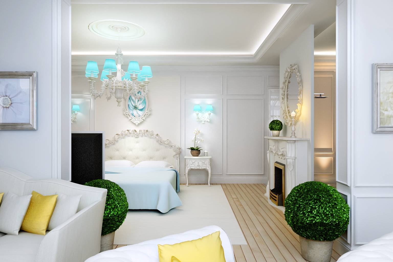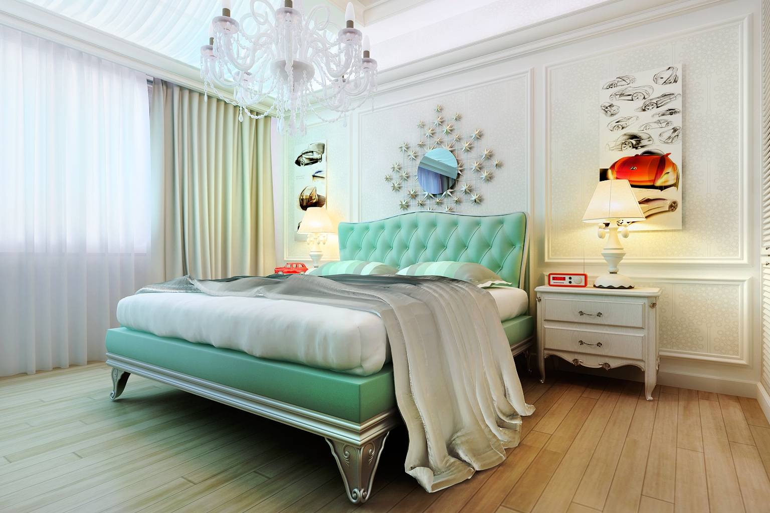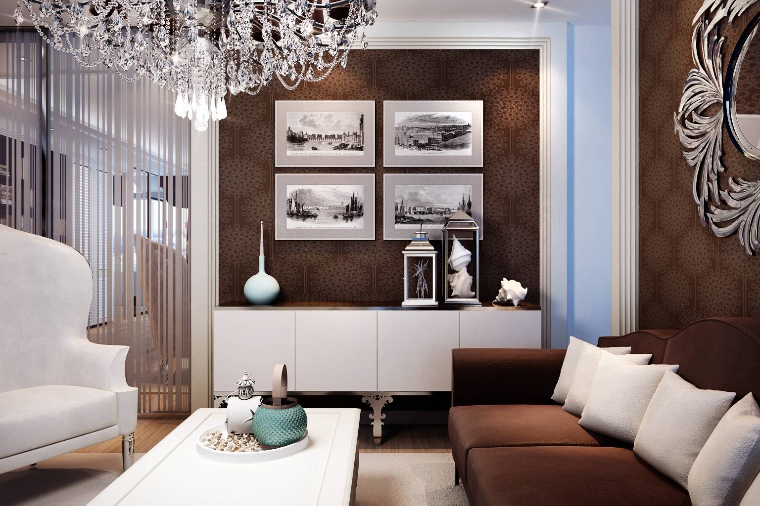 с изяществом подбора деталей – в дизайне мебели, зеркал, рисунке обоев, светильников.