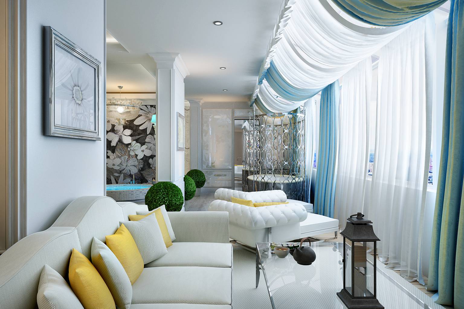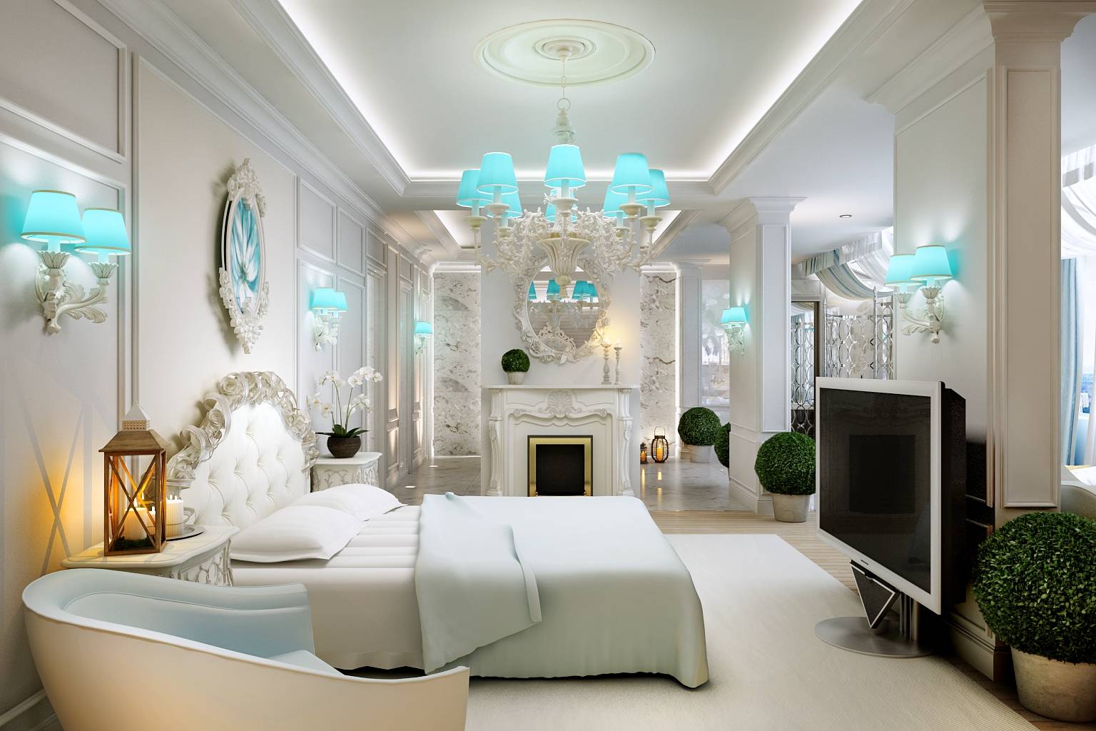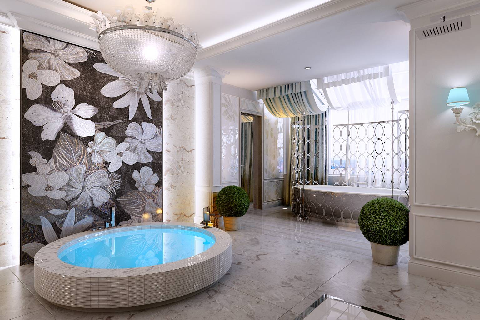с изяществом подбора деталей – в дизайне мебели, зеркал, рисунке обоев, светильников.