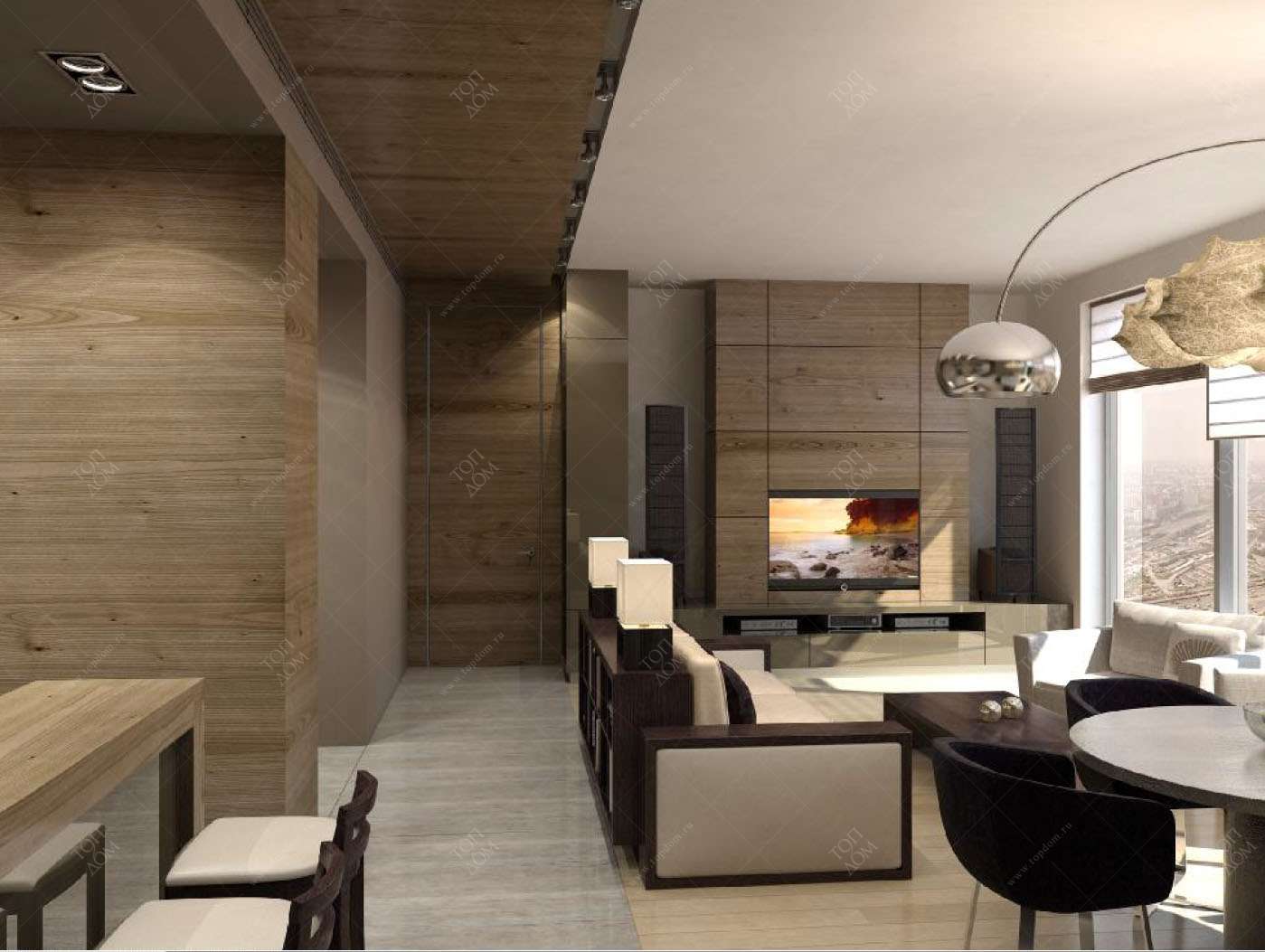 Проект гостиной и кухни в коричнево-бежевых тонах