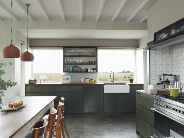 - песочно-серые стены деликатно оттенят глубокий синий, винный, изумрудный, терракотовый;