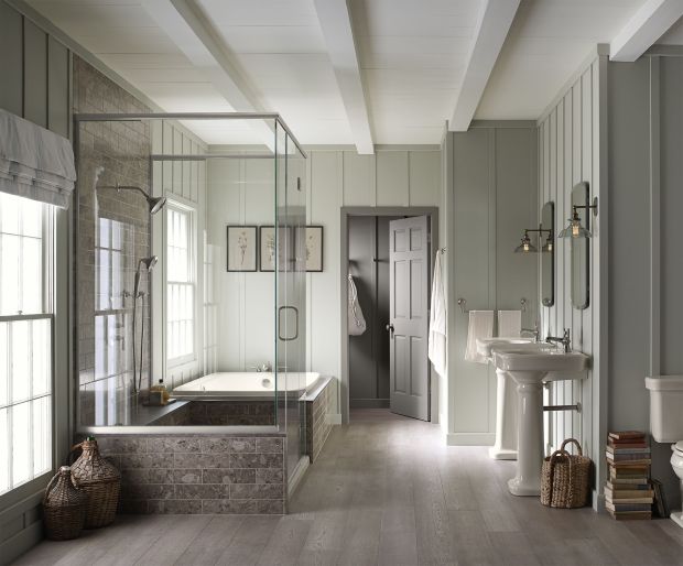 На фоне серо-бежевой гаммы фактуры, ткани и материалы заиграют новыми красками, в них проявится характер, жизнь, шарм. Общий облик комнаты вместе с тем приобретёт четкость, графичность: замысловатый рисунок деревянного пола, шелковистый блеск плитки, яркие блики стекла и хрома проявят себя с самой лучшей стороны на фоне такого деликатного соседства.