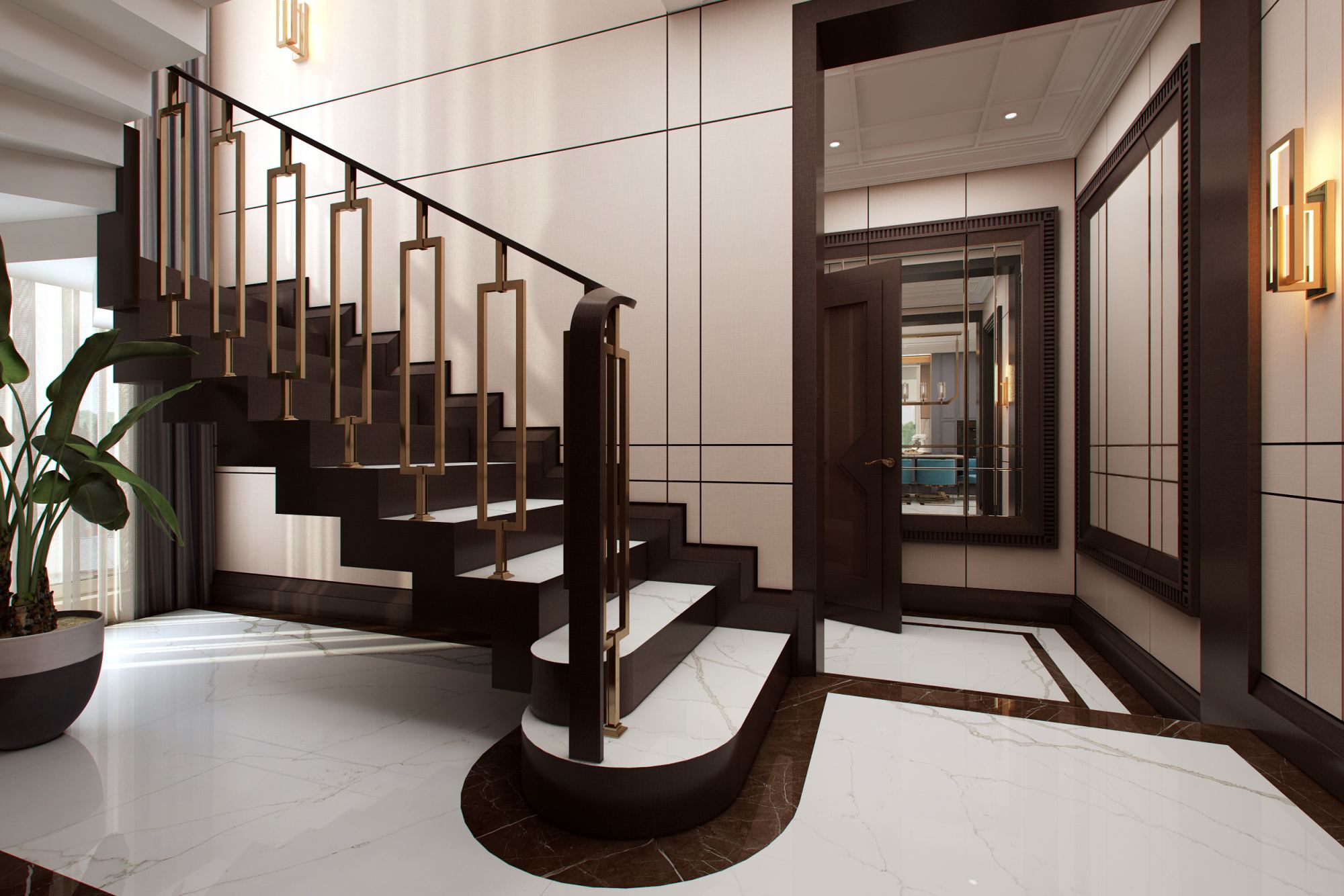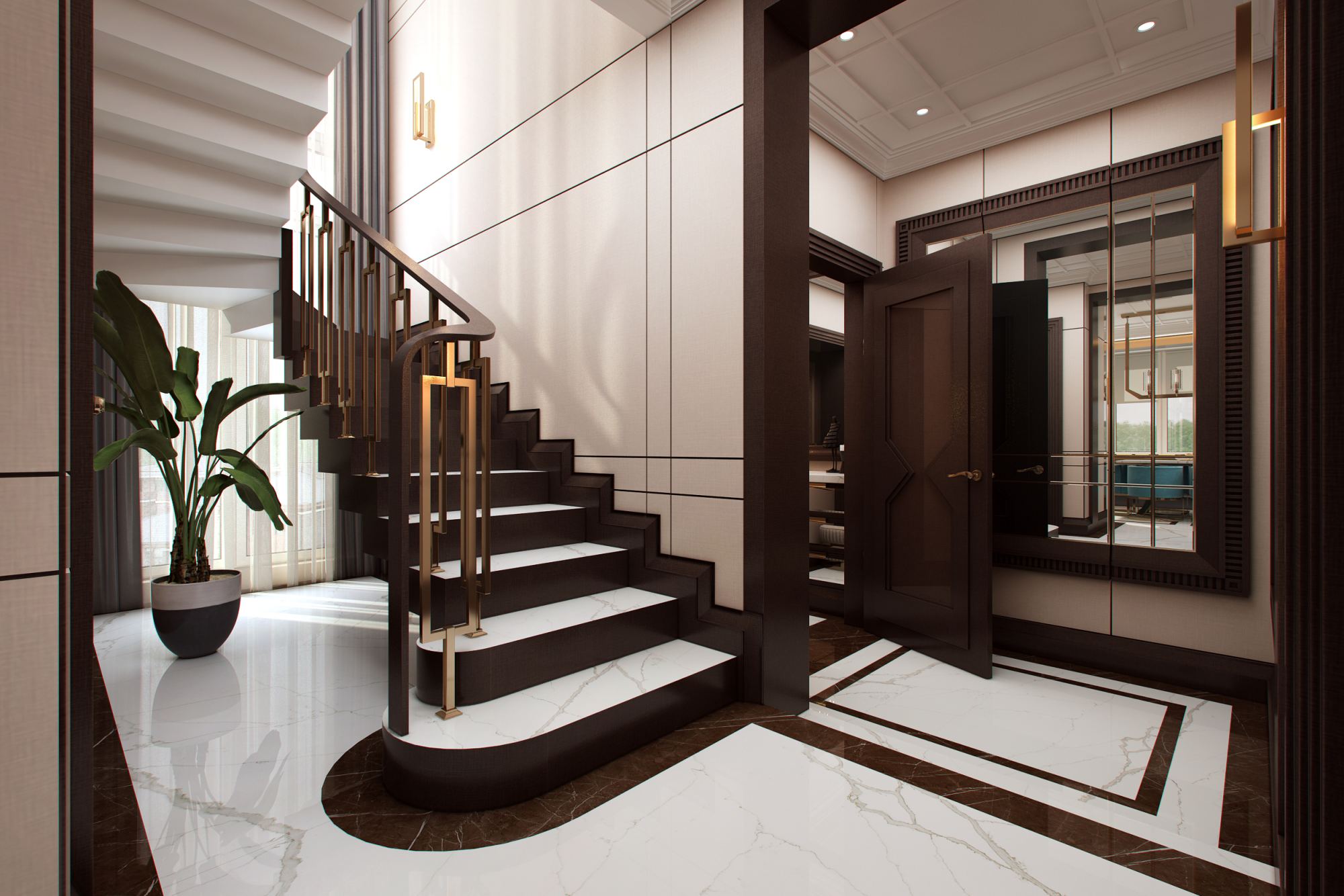Обязательная часть дизайн-проекта таунхауса – обустройство лестничного холла. Он связывает этажи не просто конструктивно, но и стилистически.