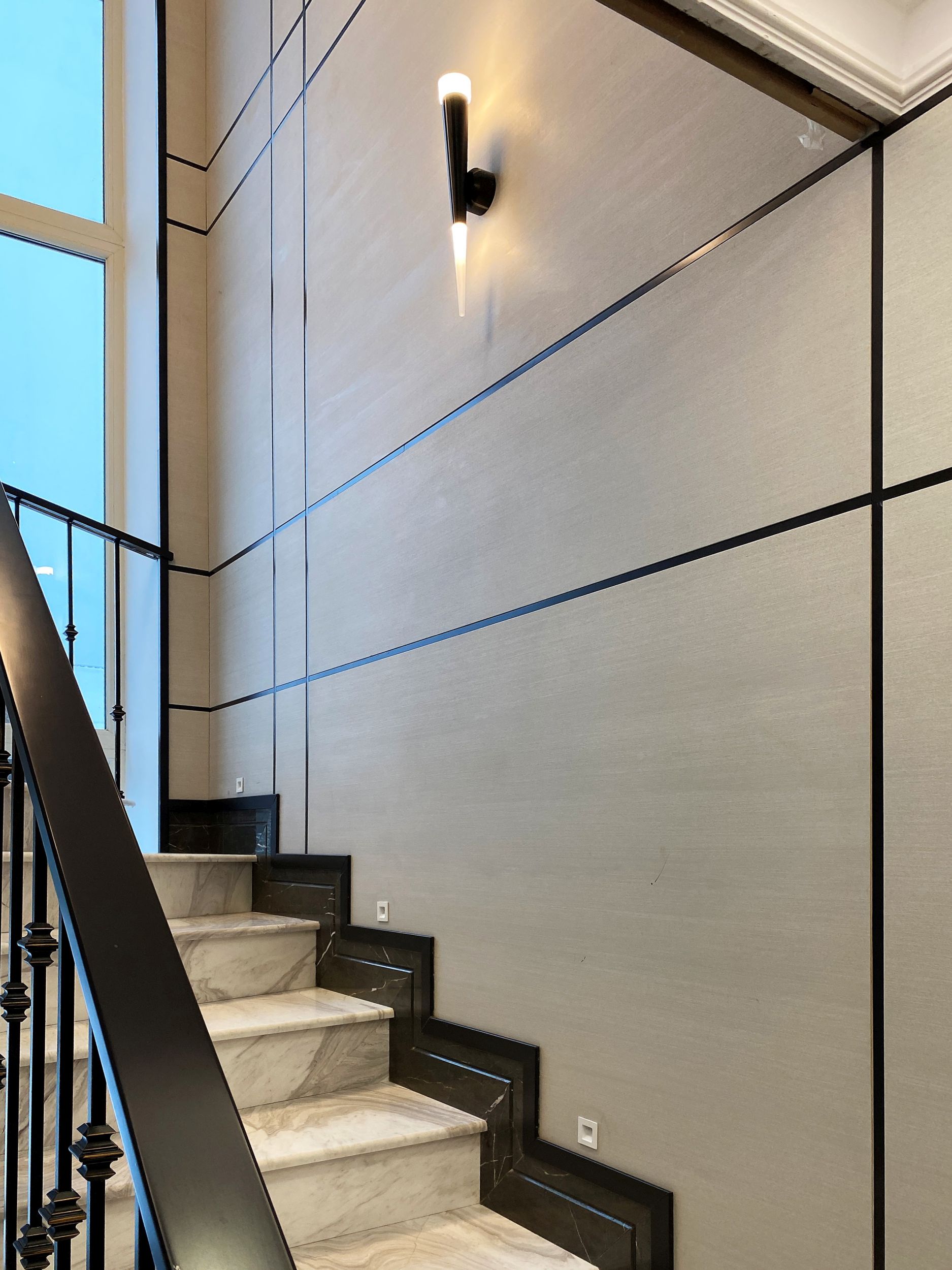 Лестничный холл 2-го этажа с деревянной отделкой стен