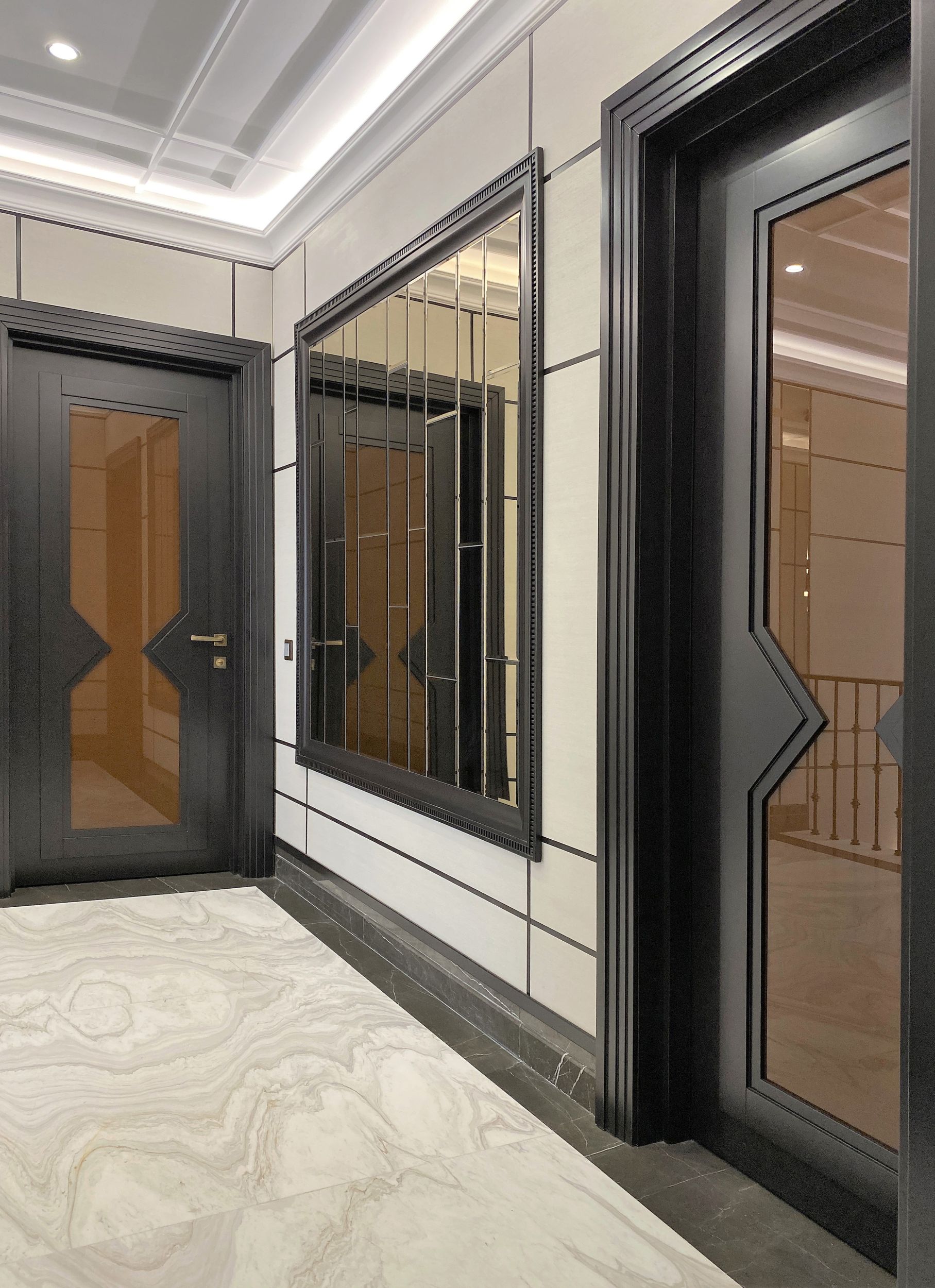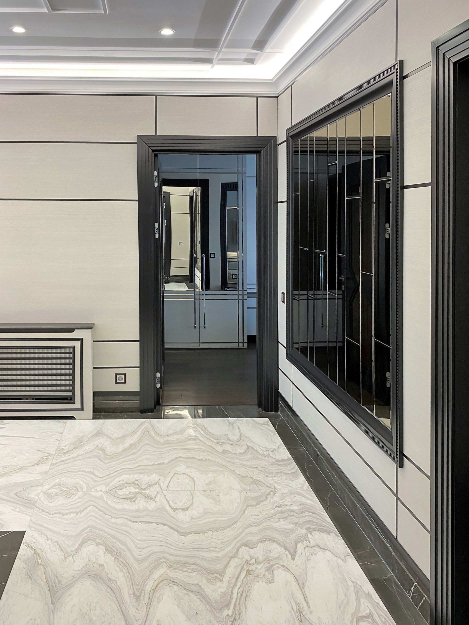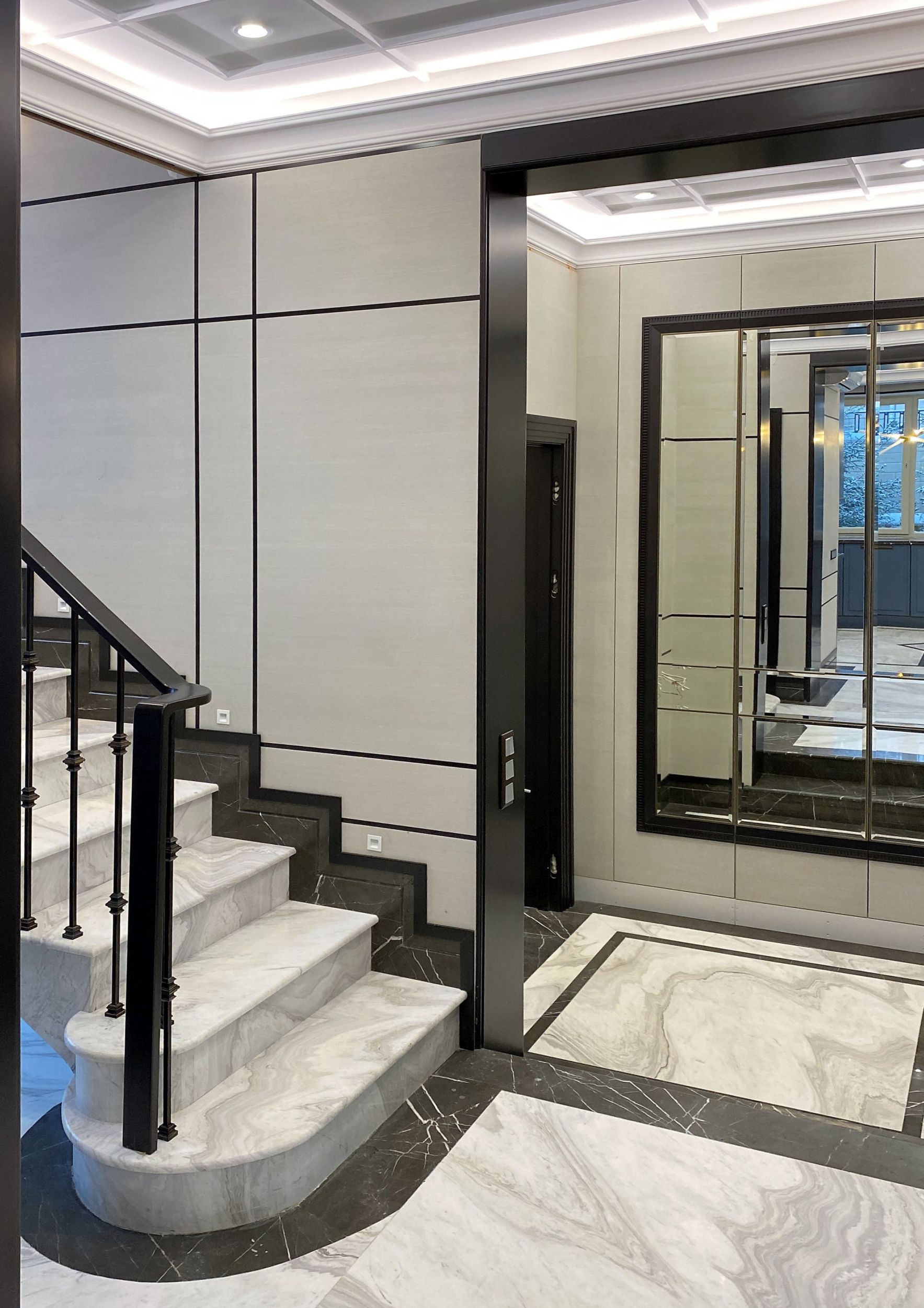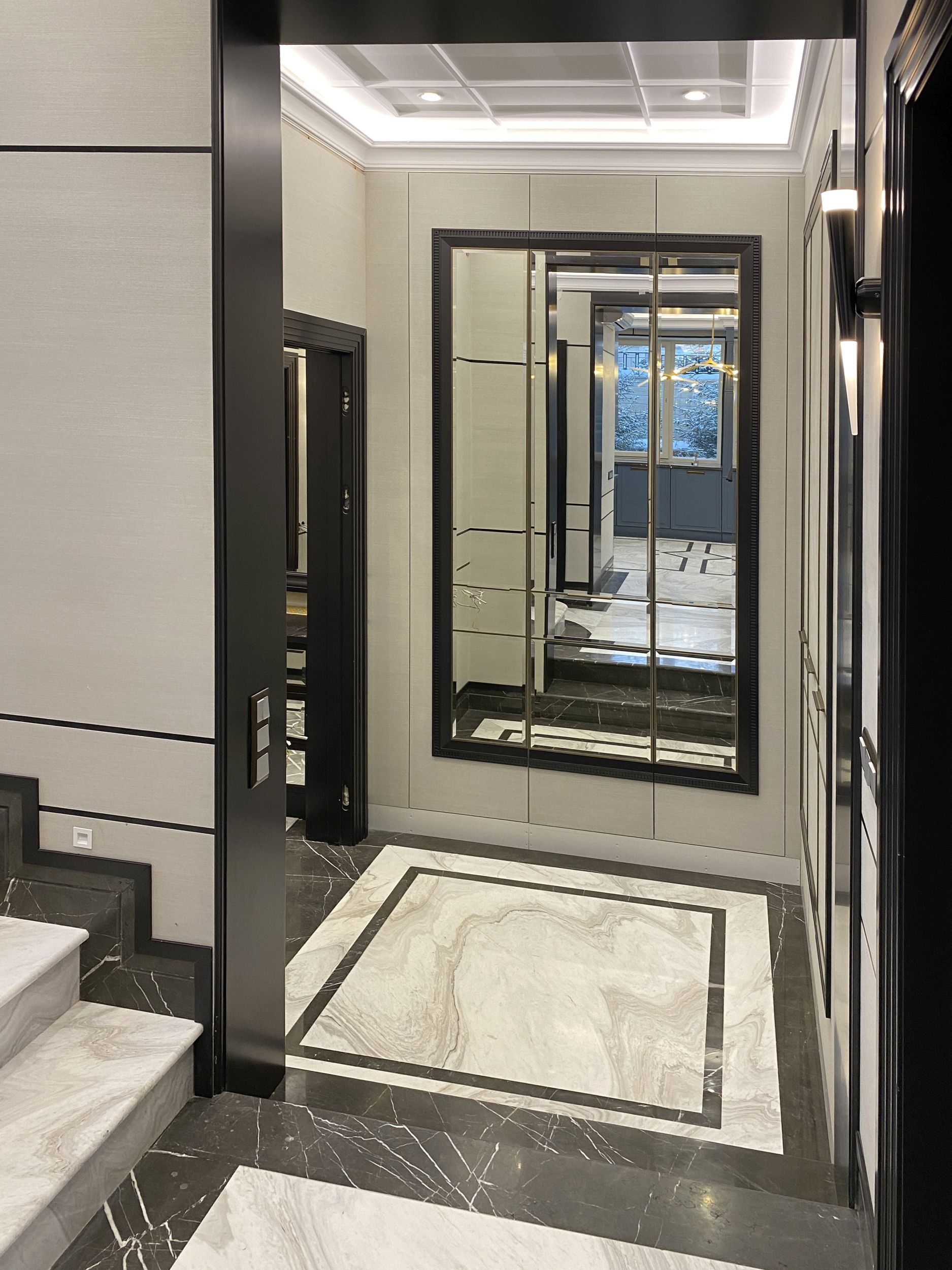 Крупное квадратное зеркало в лестничном холле 2-го этажа