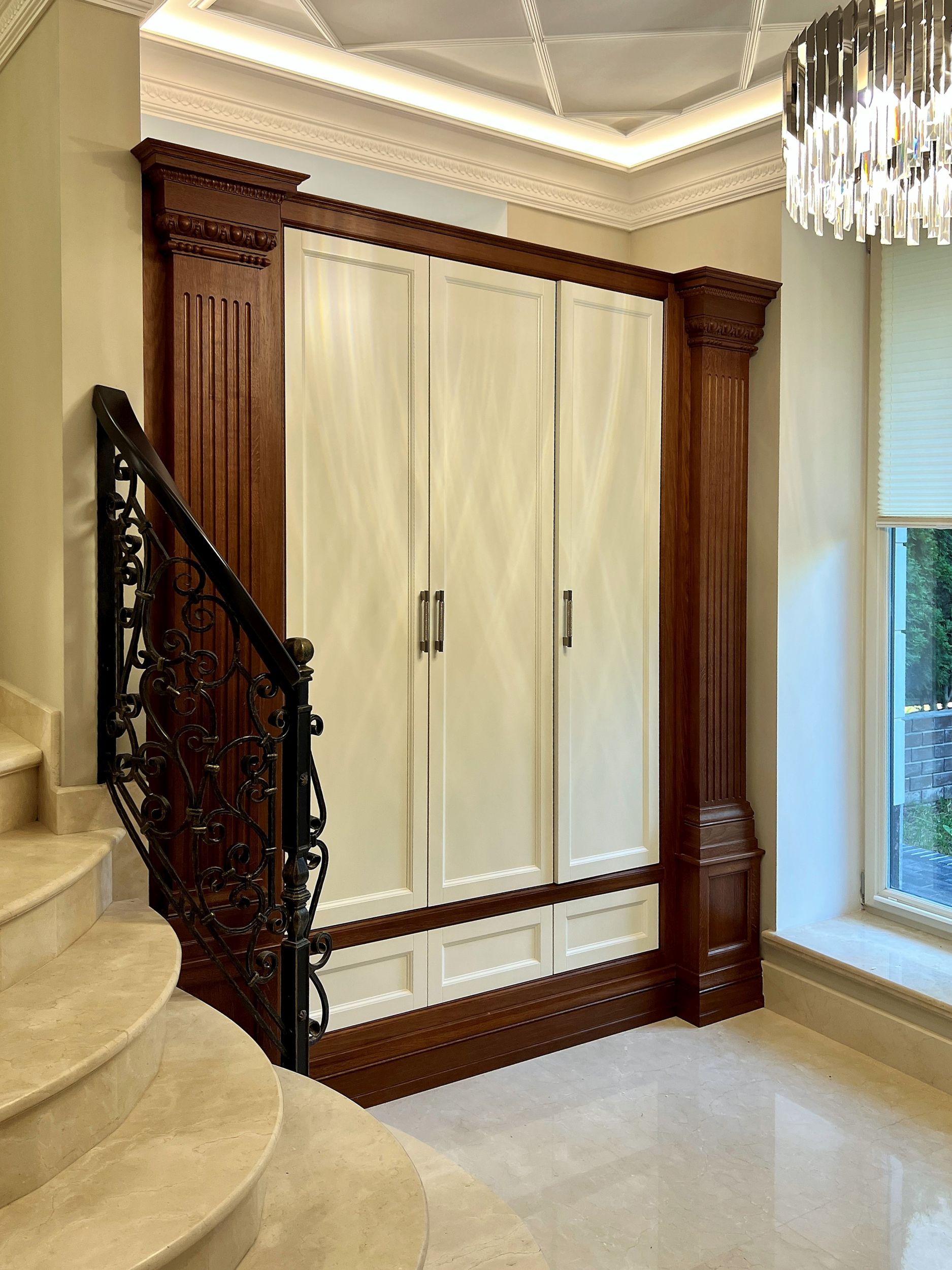 Бело-коричневый шкаф в прихожей