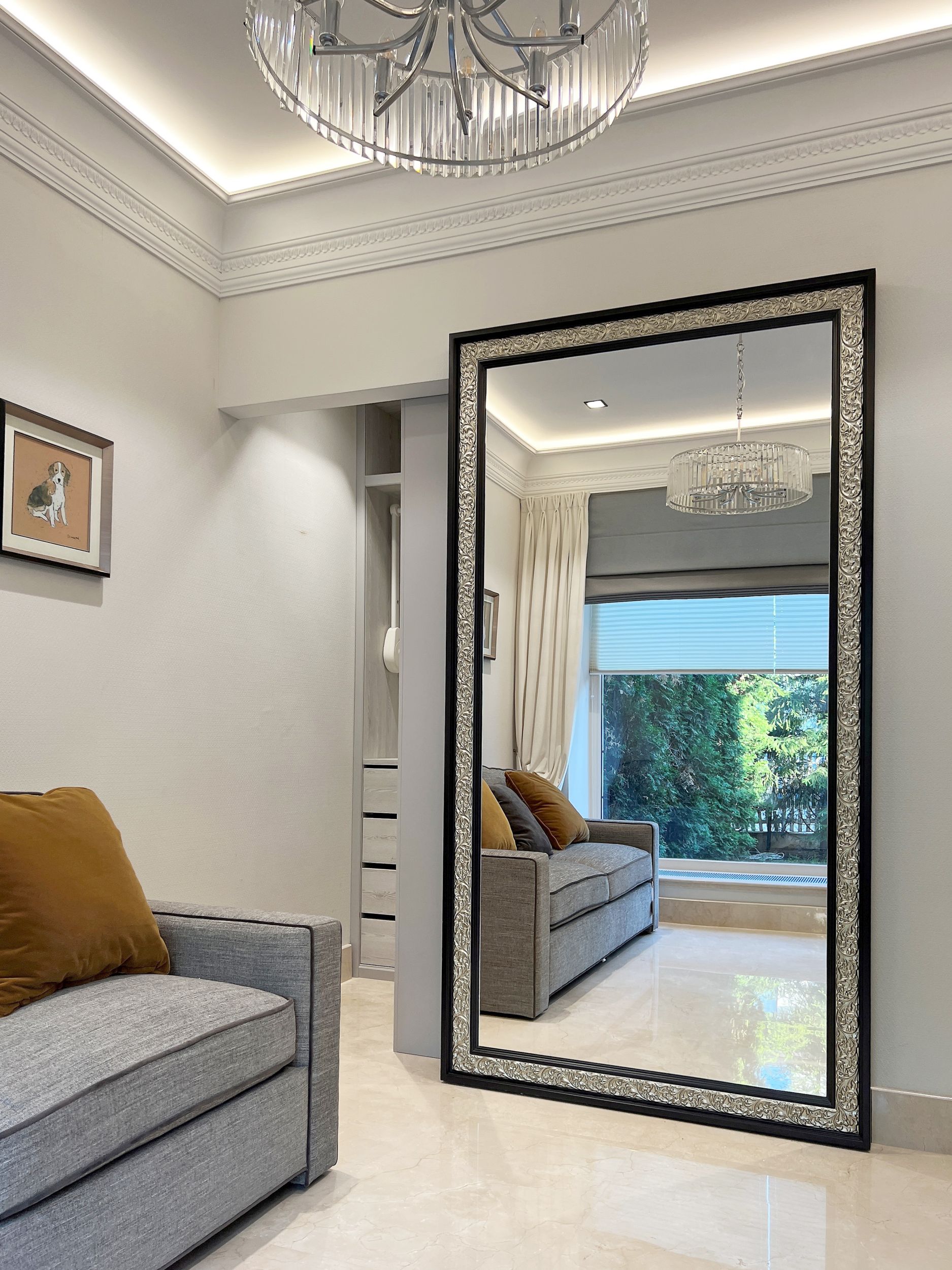 Большое зеркало в дизайне гостиной