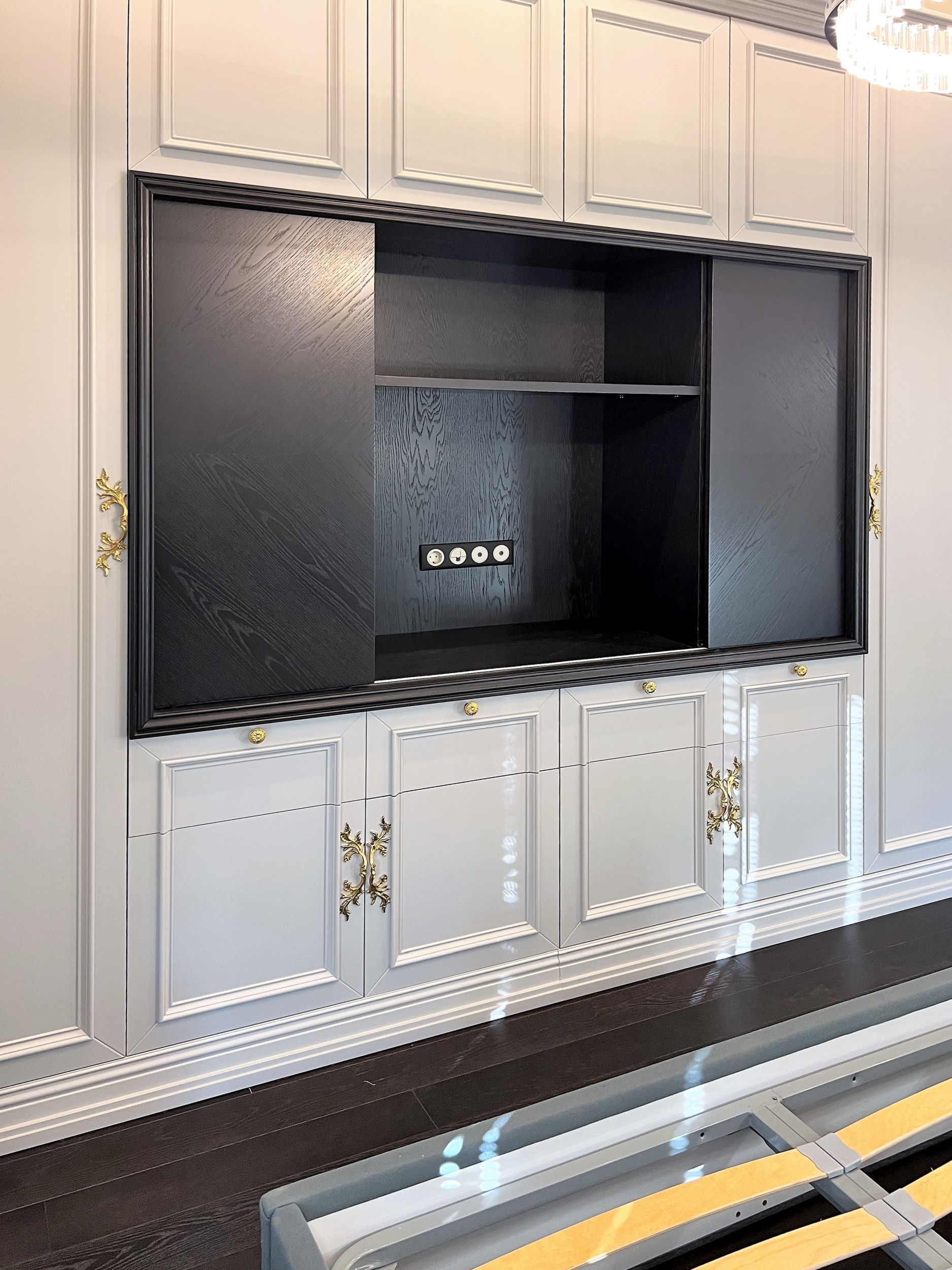 Черно-белый шкаф в дизайне спальни