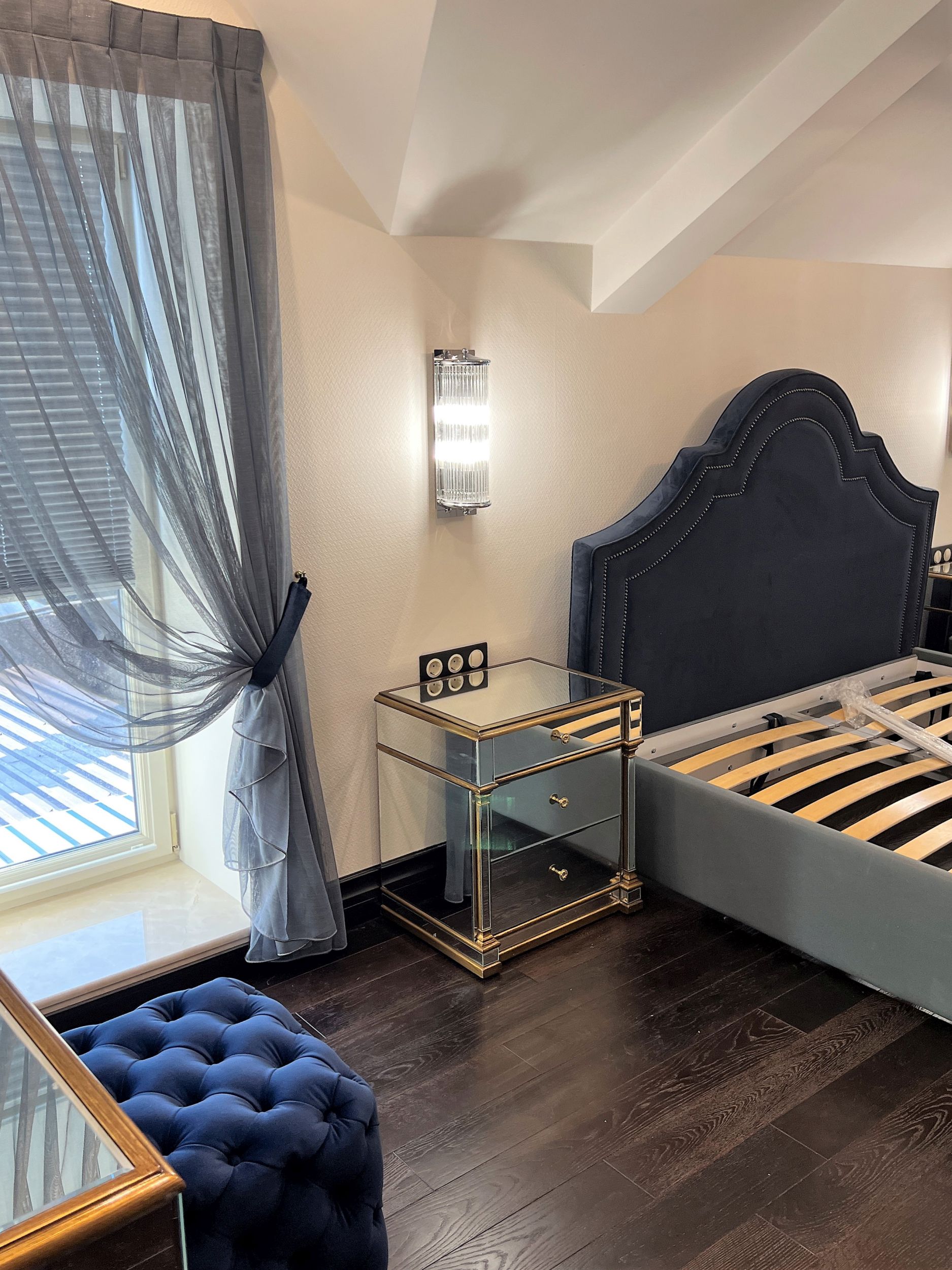 Зеркальная тумба в интерьере спальни