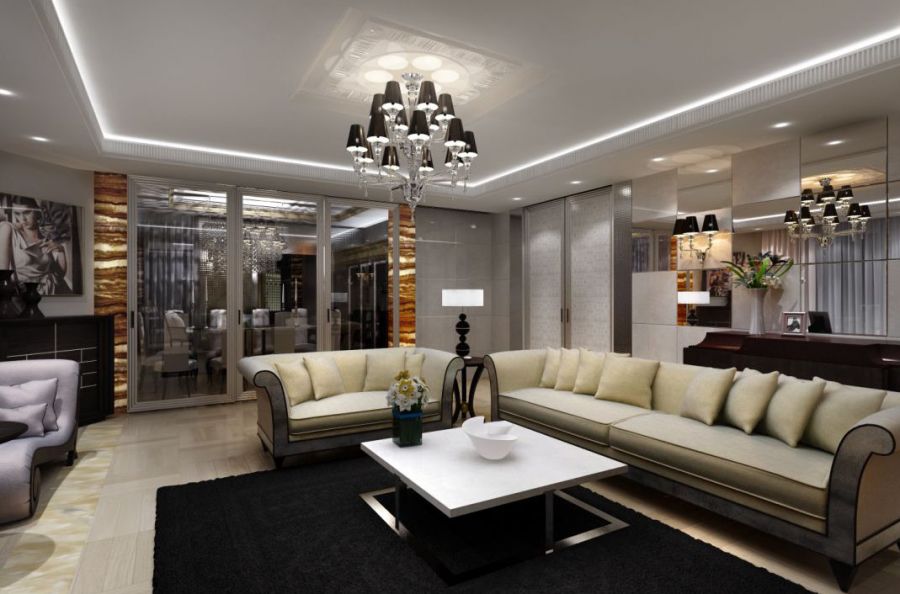 Элитные интерьеры дорогих домов реализуются на основе классики и современных стилей. В проекте дизайна частного дома в классическом стиле традиционная отделка стен молдингами и пилястрами, мраморная облицовка пола комбинируется с минималистичной мебелью, постерами, геометрическим декором потолка, ар-деко светильниками.