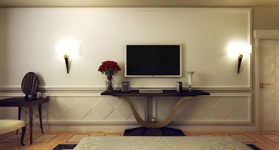 В элегантном интерьере дома или квартиры должна присутствовать легко различимая фокусная точка. Это объект (например, телевизор, камин, журнальный стол, оконный проем), относительно которого выстраивается остальная обстановка. Симметрия даст ощущение гармонии и красоты.