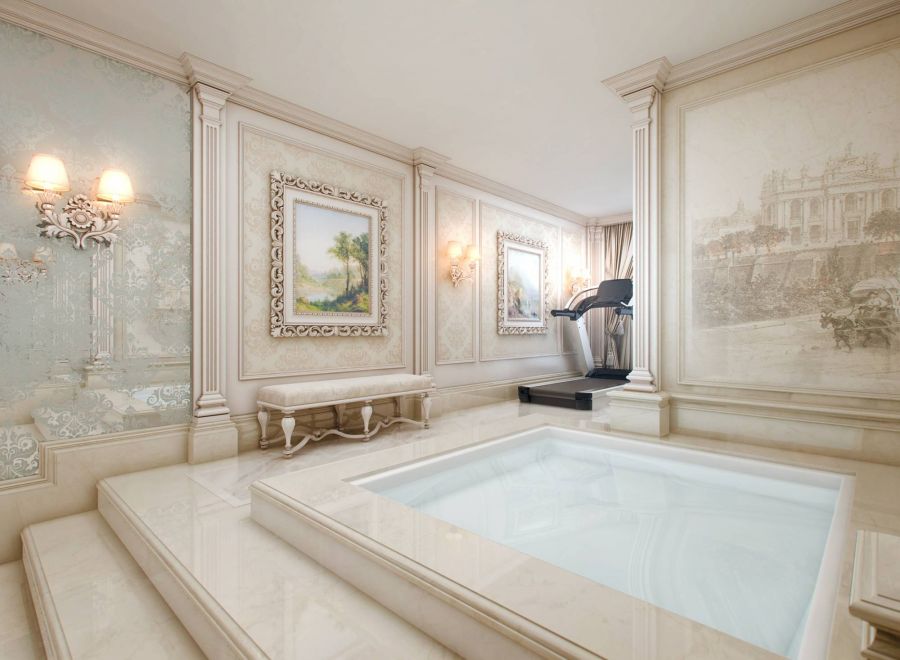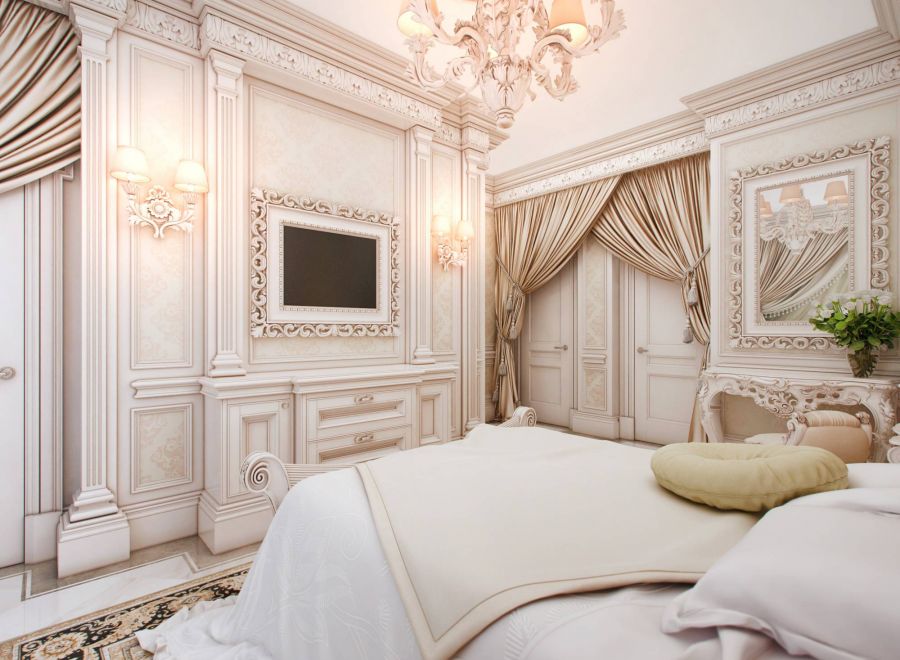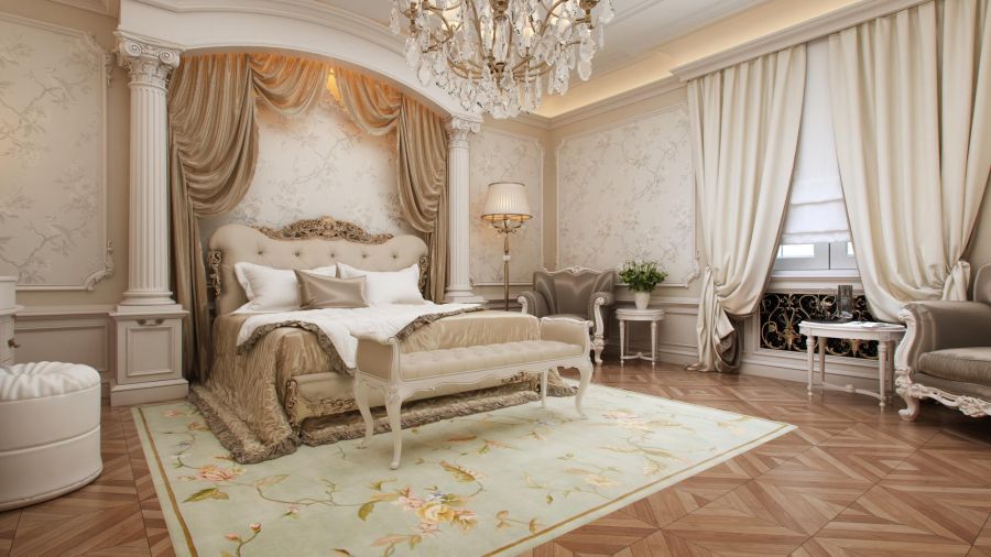 Особенность стиля в том, что при использовании типичных элементов и приемов оформления можно варьировать характер дизайна – реализовать пышную дворцовую обстановку, строгий ампир или утонченную современную классику.
