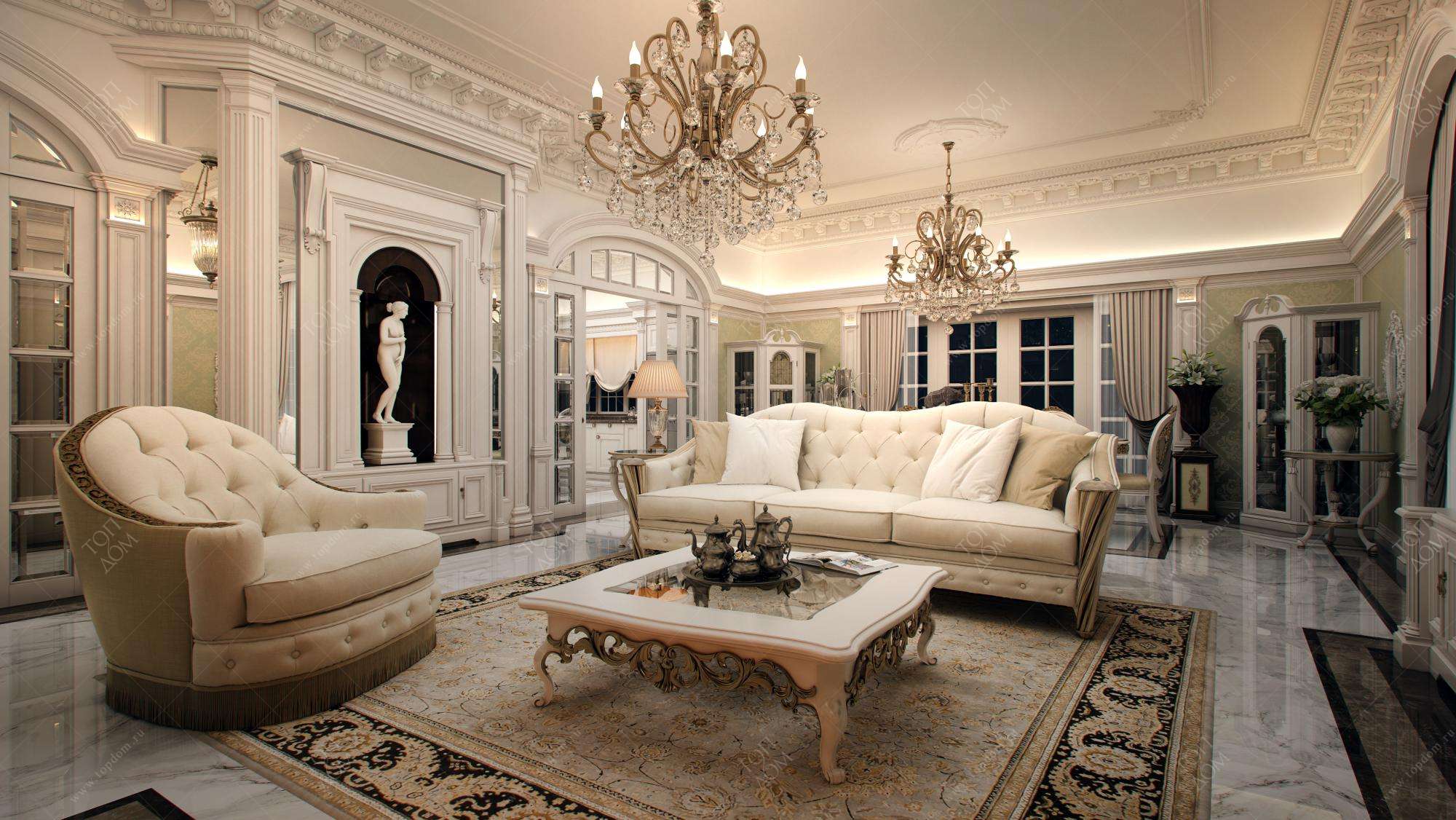 В проекте интерьеров дорогой квартиры классический декор выходит на первый план во всем многообразии: