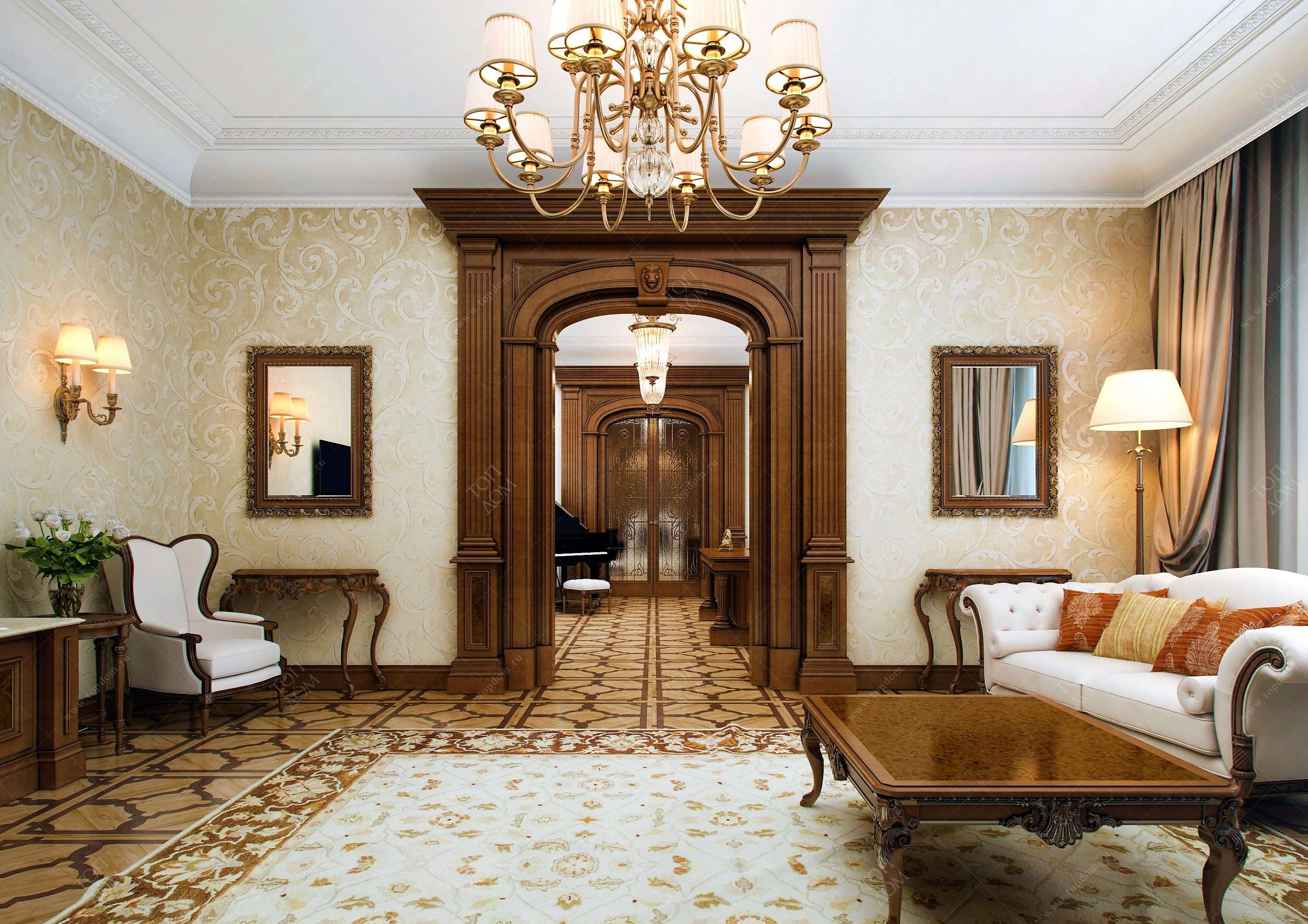 Интерьеры в стиле классики отличаются дорогой отделкой поверхностей.