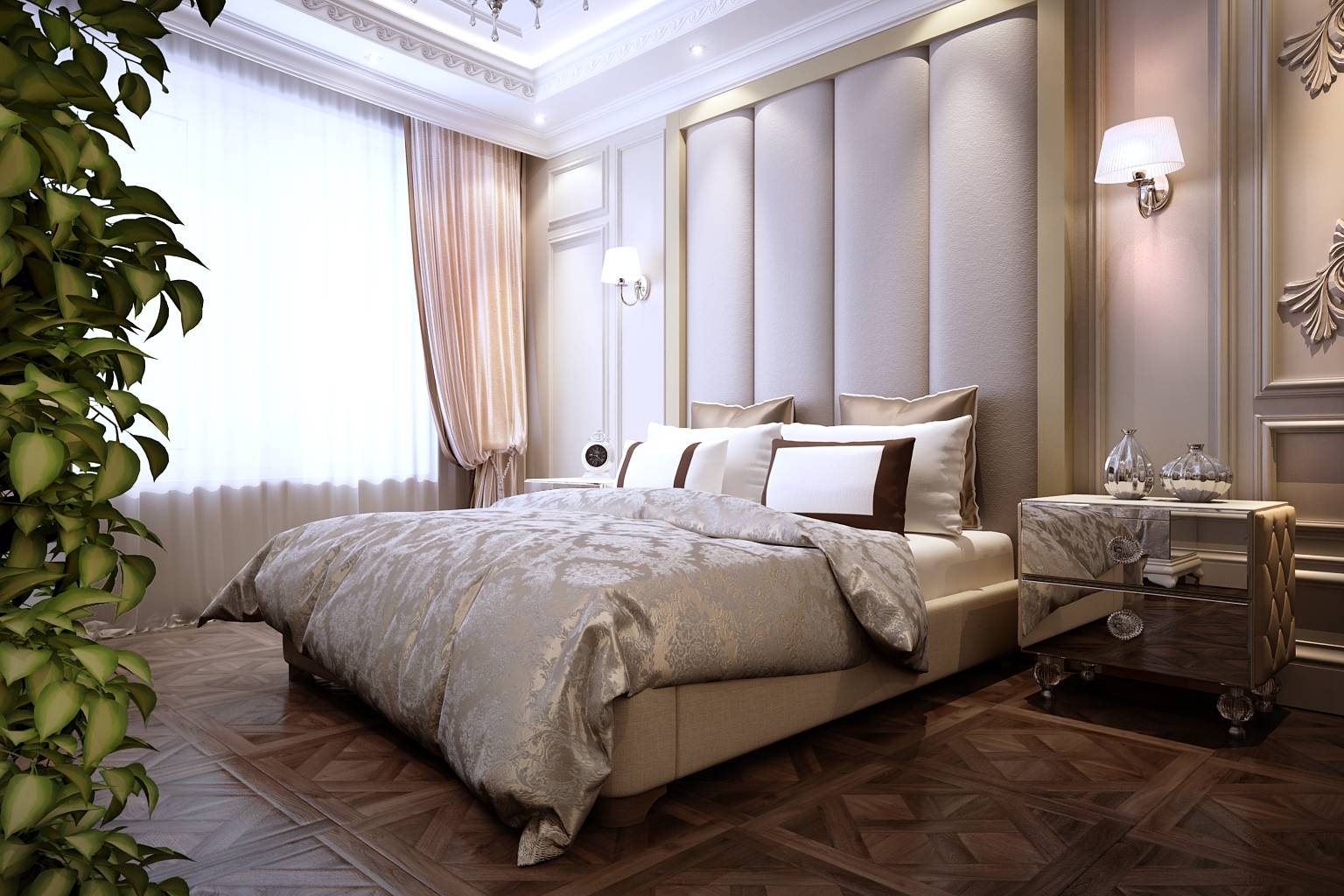 Что касается первого – дизайнер выбрал розовые и бежевые оттенки вплоть до орехового. Эта мягкая, припудренная тональность как нельзя лучше подходит для места отдыха.