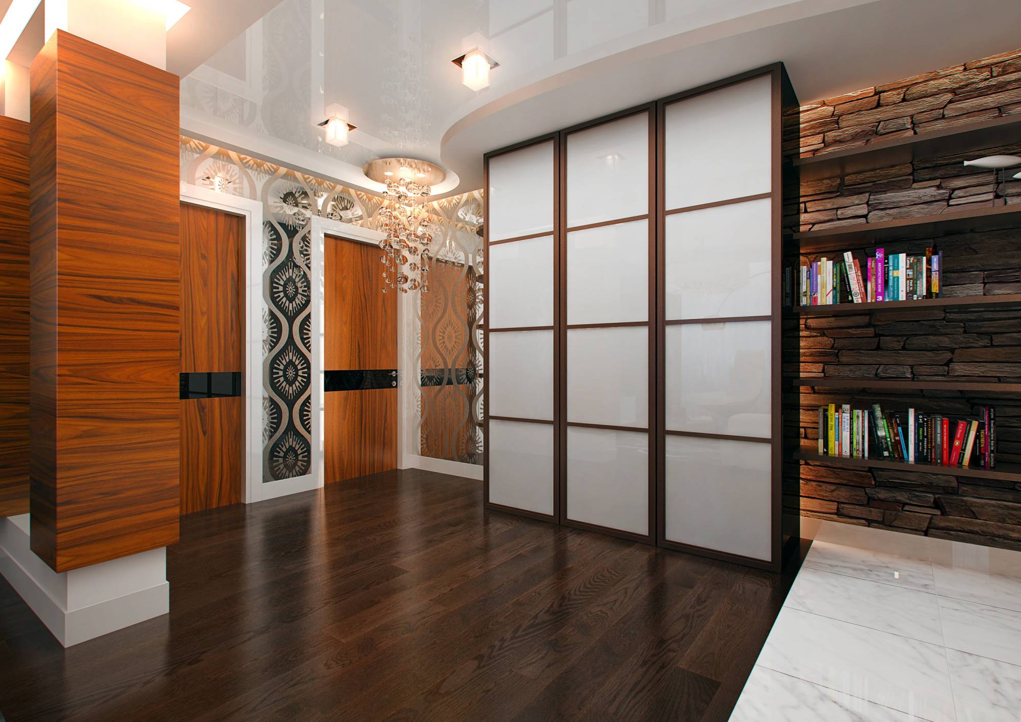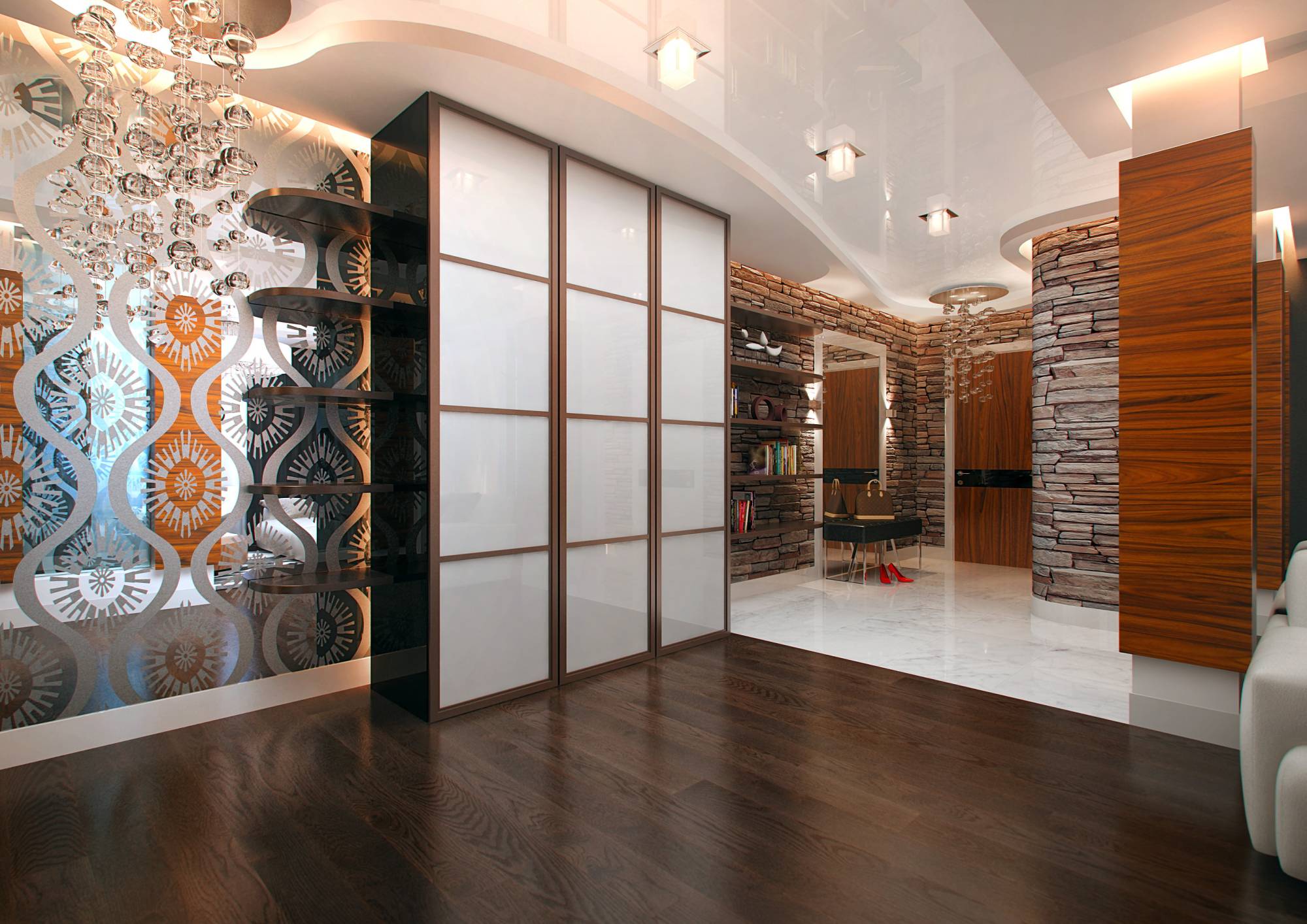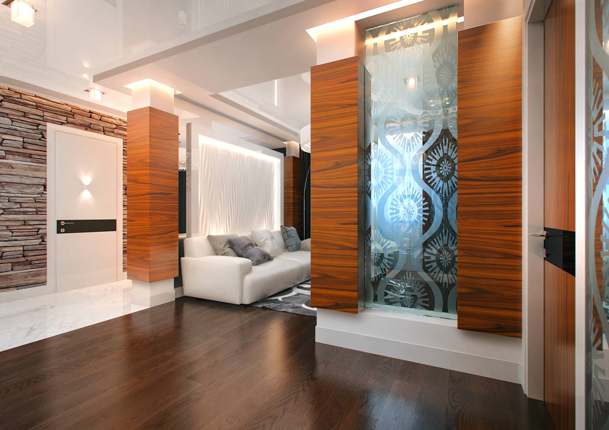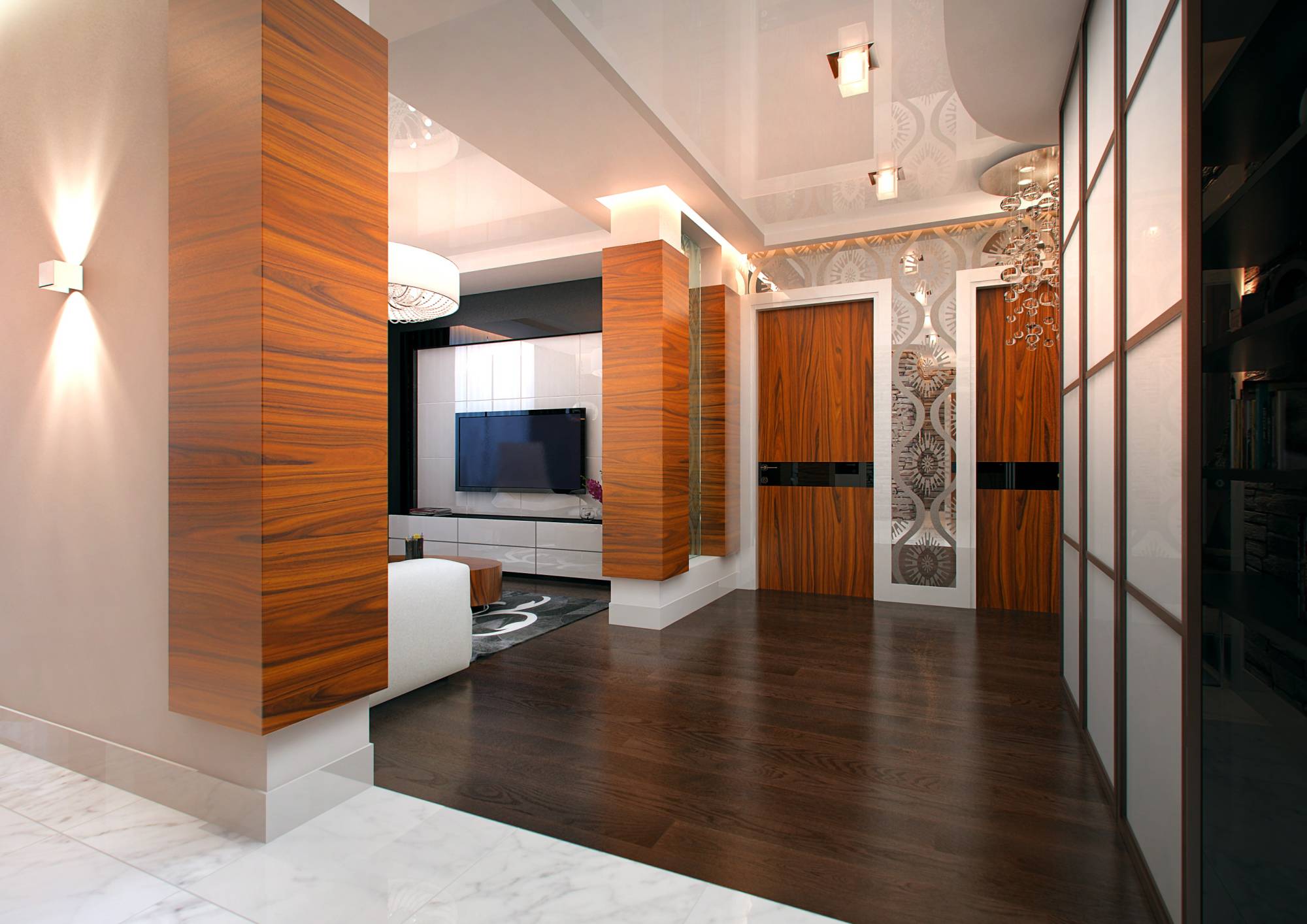 Действие второе: прихожая с отделкой деревом яркого цвета.