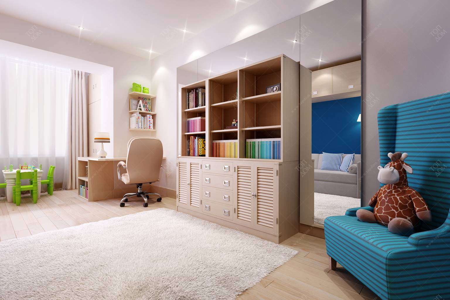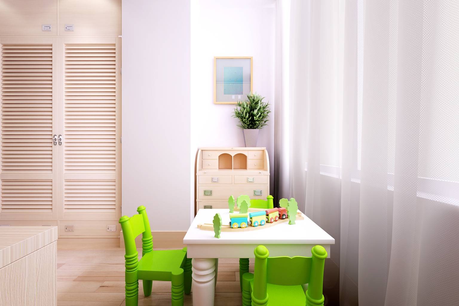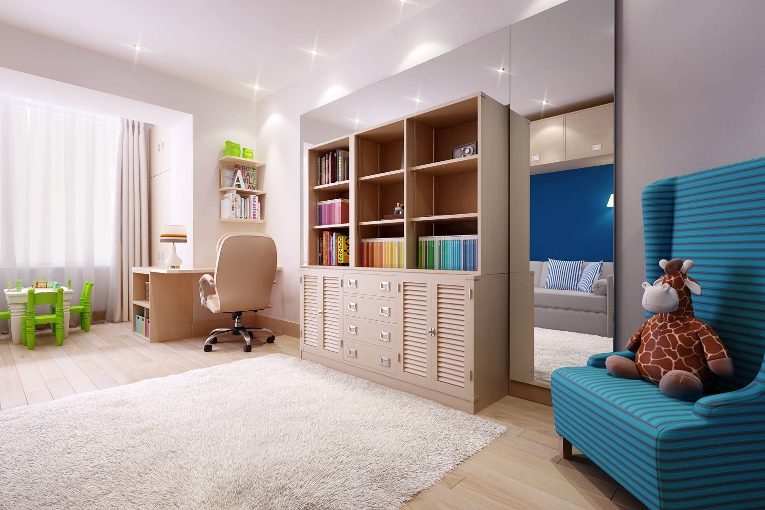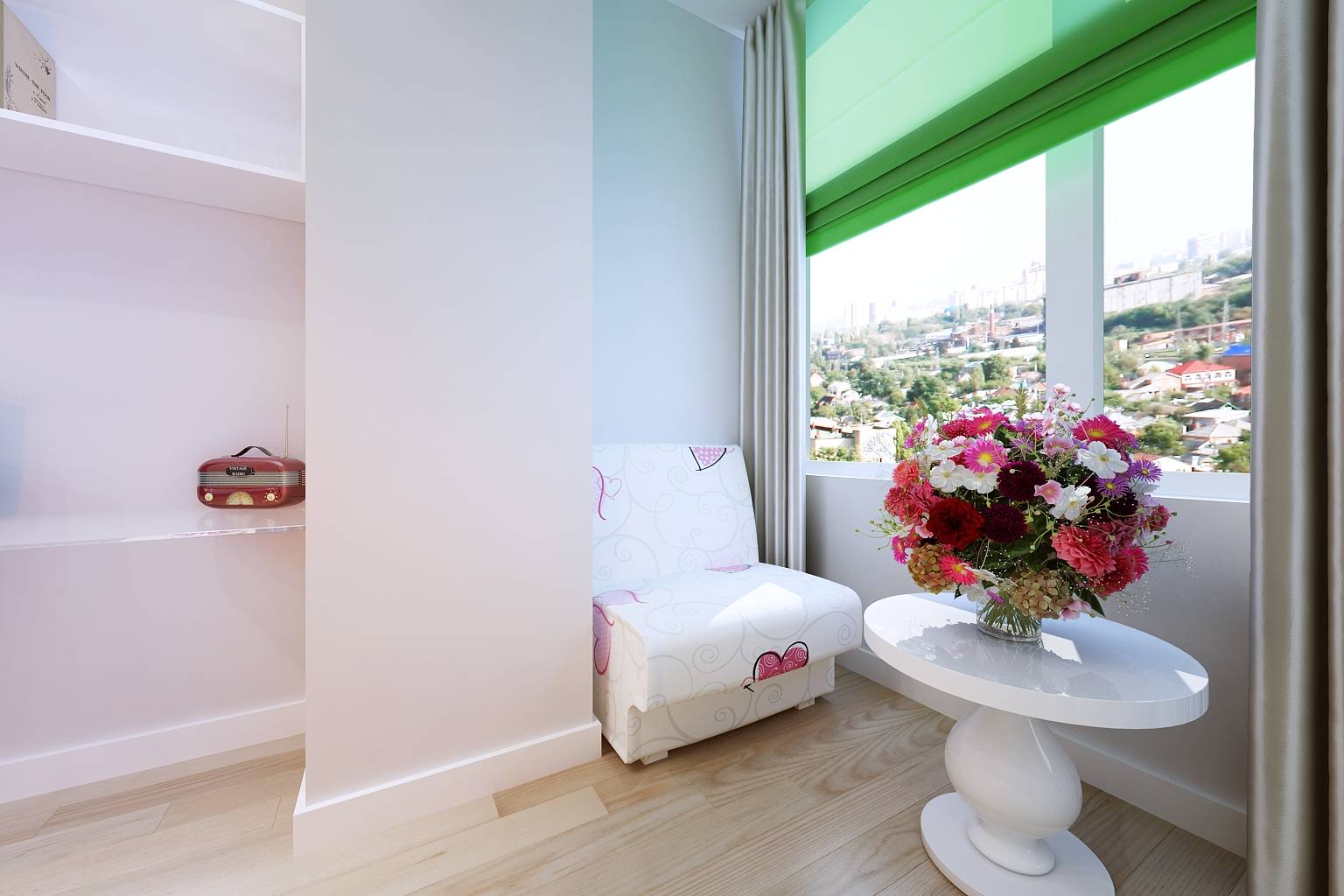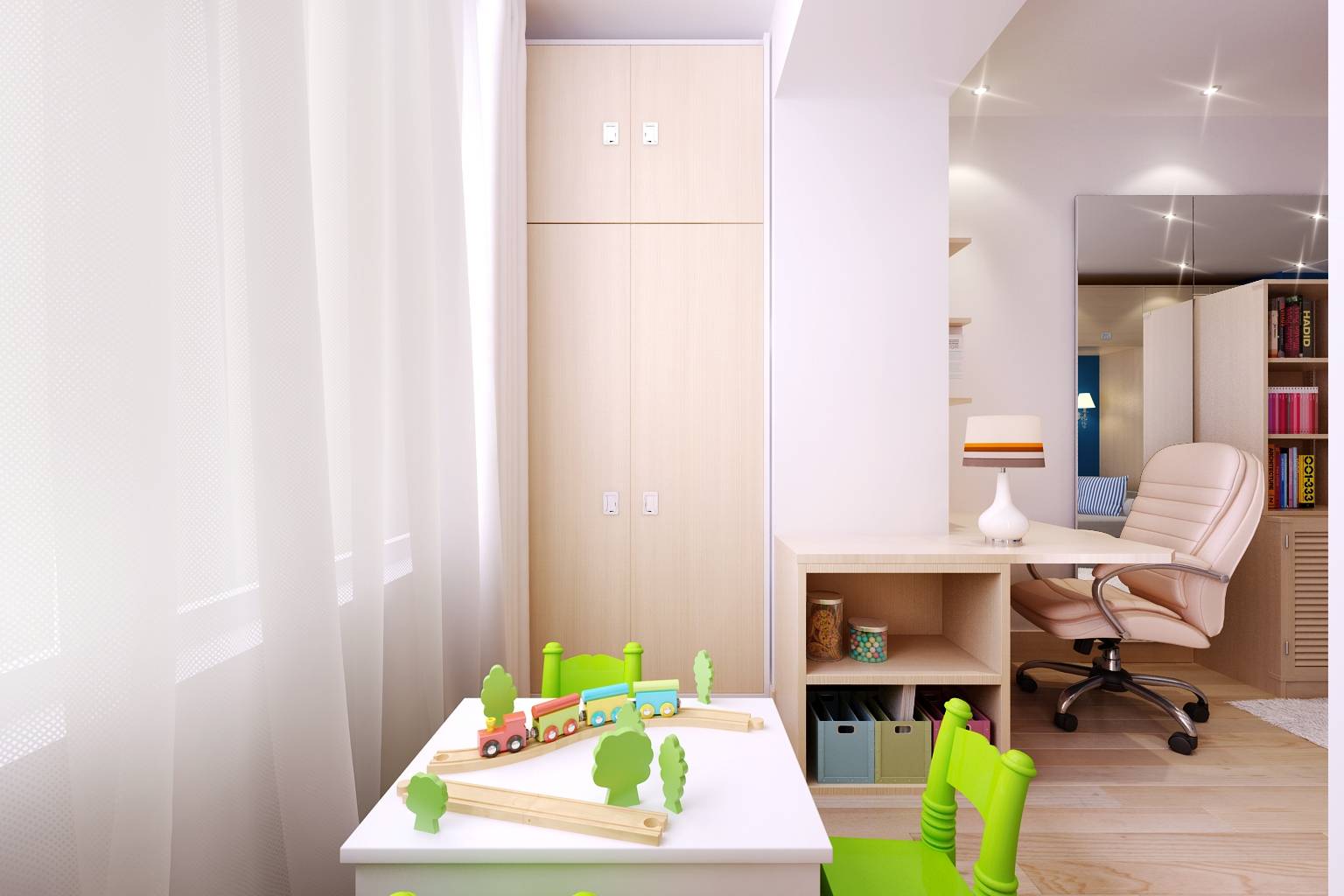 Пространство детской расширяется за счет совмещения с балконом. Утепленные «квадратные метры» балкона позволили выделить дополнительную зону для детских игр. При этом эта зона отлично освещена за счет большого окна. Больше света – больше пользы для детского здоровья.