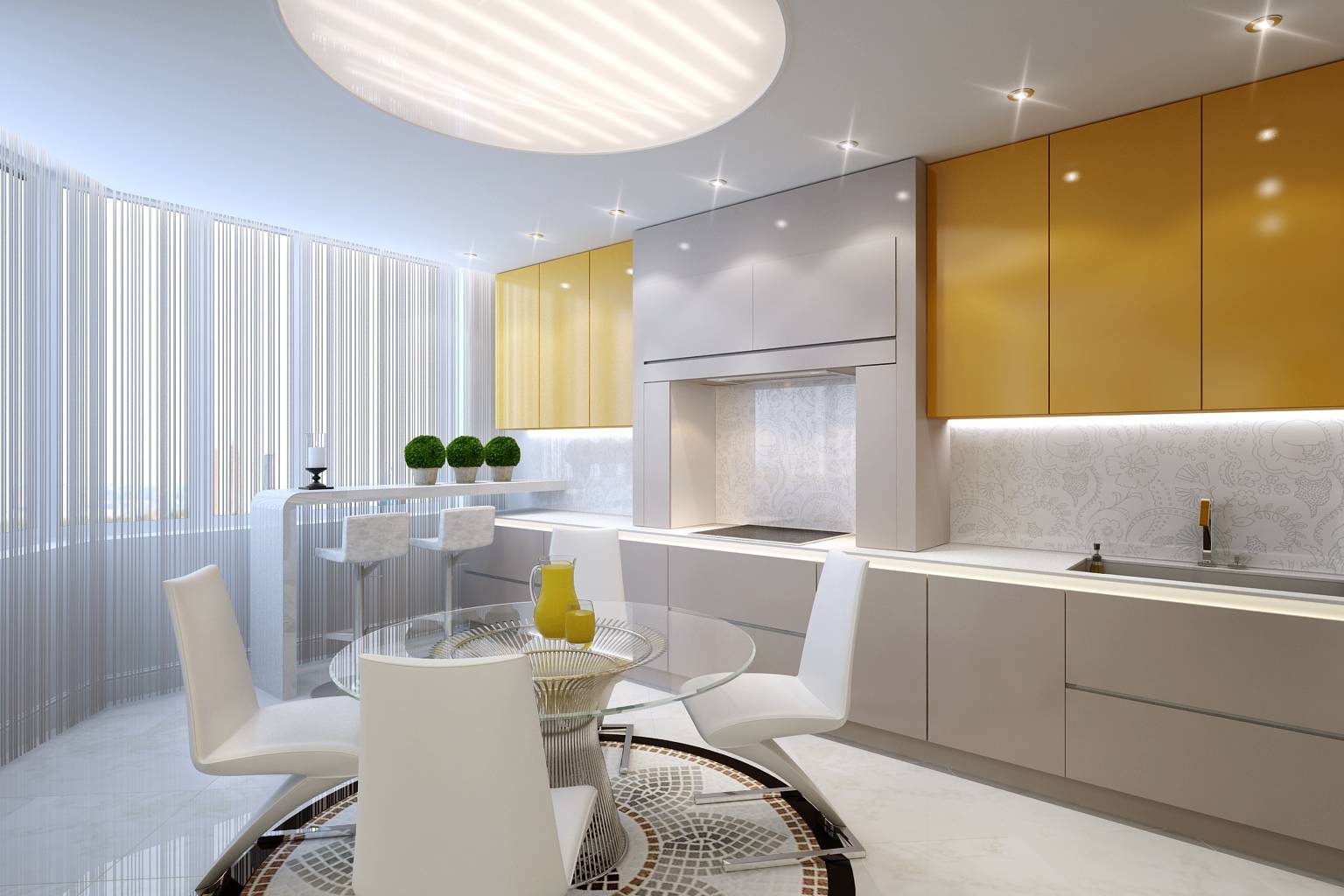 - Модные цвета: белый и слоновая кость. При этом благодаря добавлению теплых желтых красок кухня выглядит очень уютно.