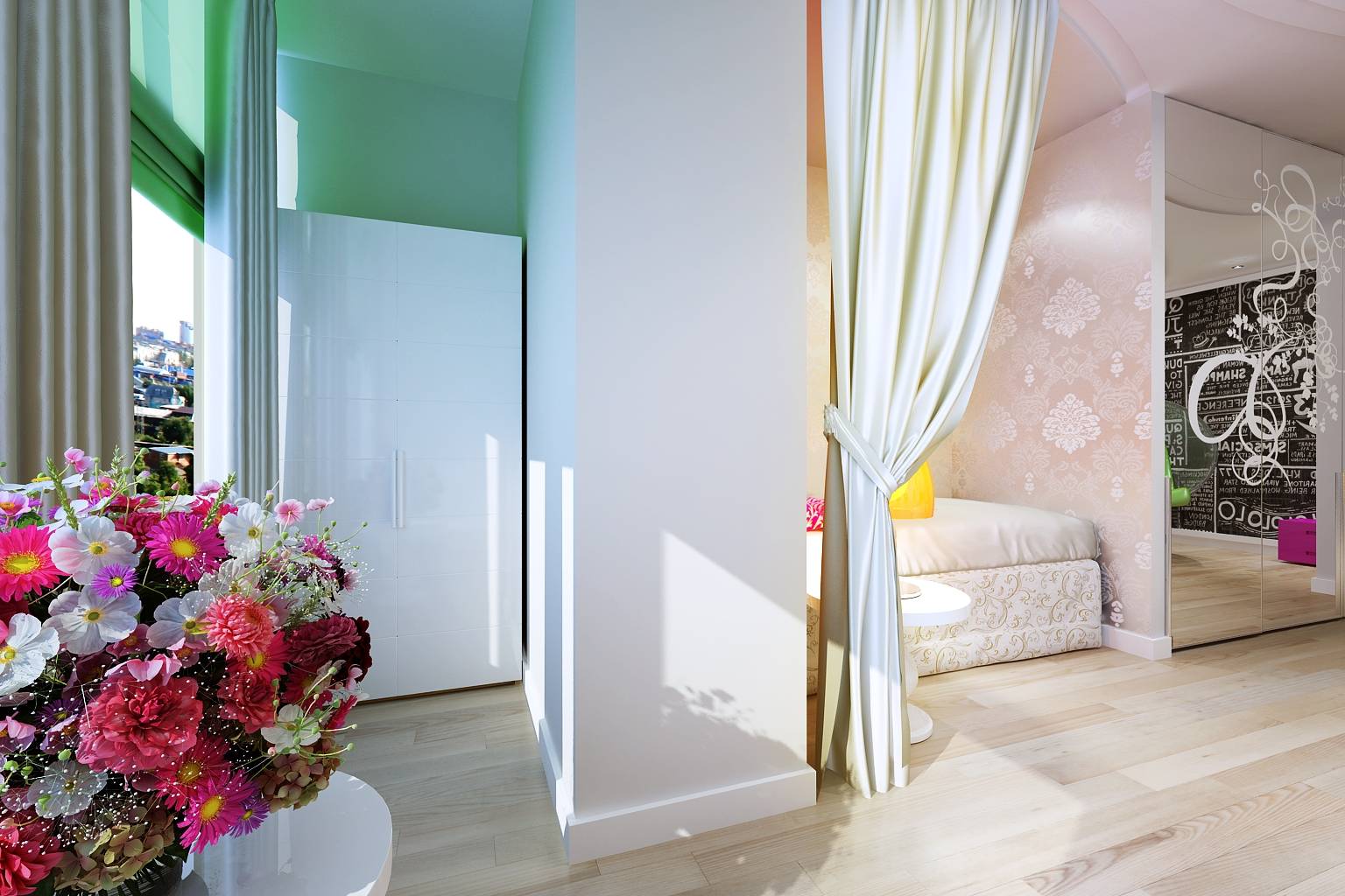В комнате нашлось место для вместительного гардероба с зеркалом, спальни и зоны отдыха возле окна – все, как у взрослой леди.