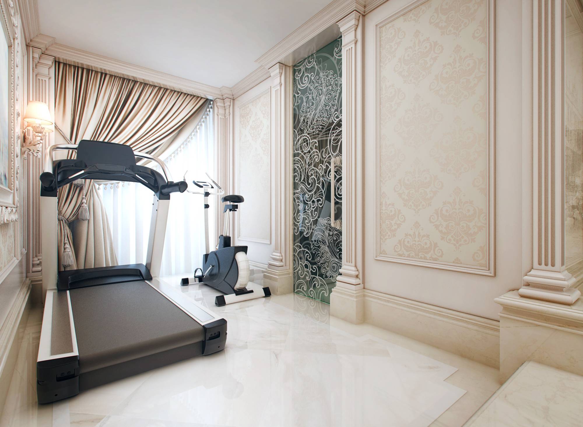 Фитнесс-зона с велотренажером и беговой дорожкой.