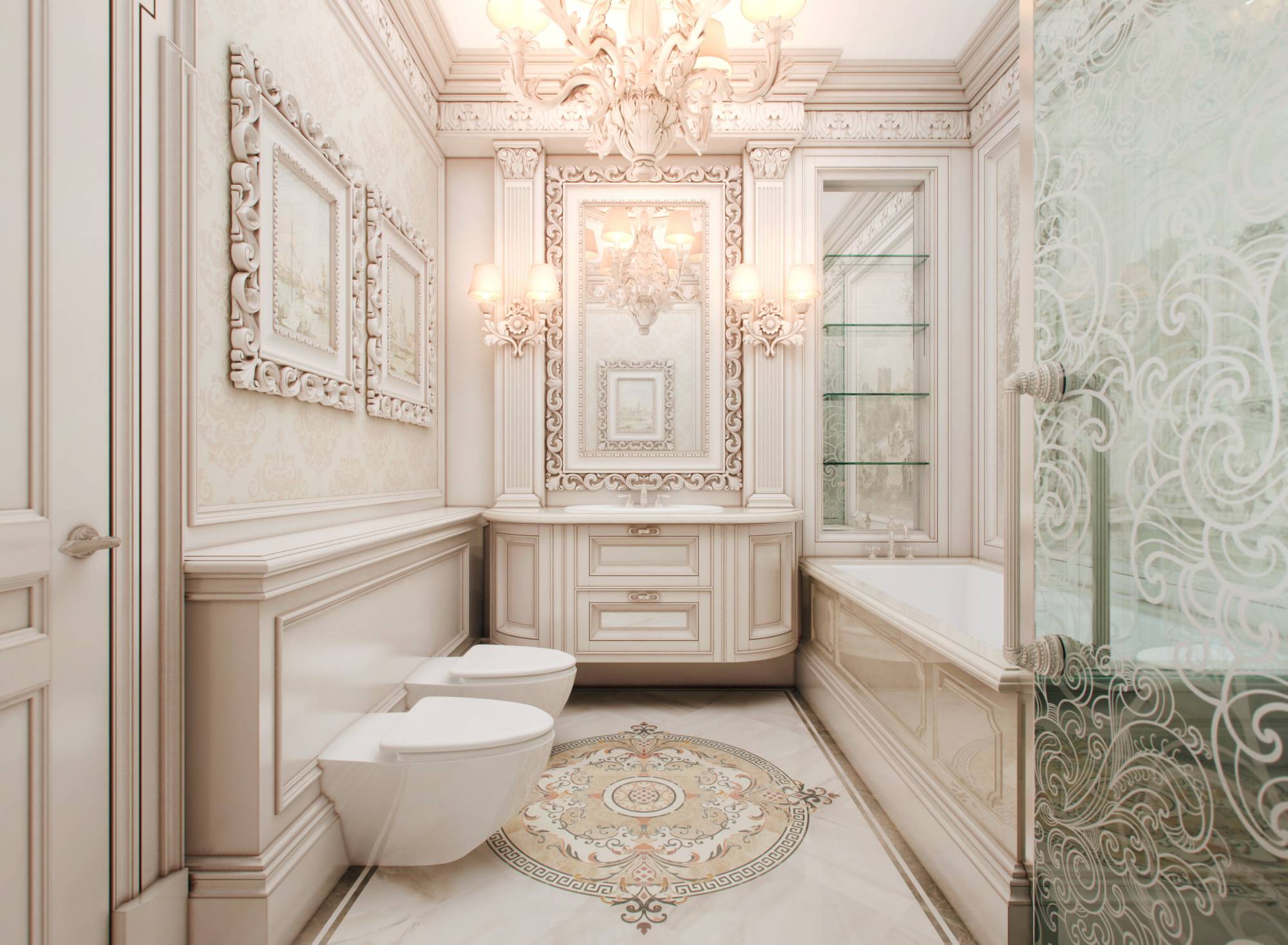 Ванная комната стала особым помещением. Зеркала, мрамор, кожа, просторное помещение – создают неповторимую атмосферу: