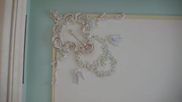 - внутренняя часть потолка между молдингами окрашена в более темный оттенок, это делает плоскость более выразительной;