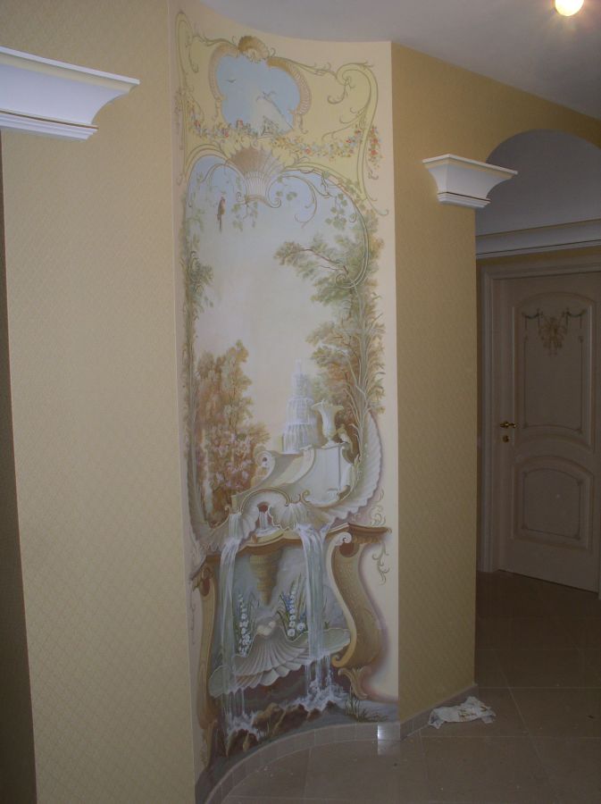 Подготовка поверхностей включает те же этапы: выравнивание, шпатлевание, разметка будущей композиции. Если стену до этого отделывали, главное, чтобы она полностью просохла перед оформлением лепниной. Иначе декор просто отслоится.