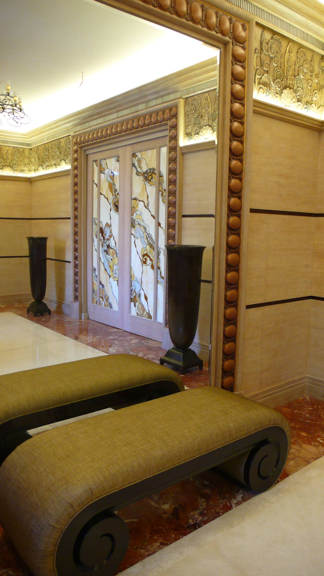 Здесь сочетаются прямые и ломаные линии, острые и скругленные углы, четкие формы и плавные контуры. Акцент в оформлении делается на роскошь и экспрессию. Богатство материалов – отполированные ценные породы дерева, стекло, металл – выделяет арт-деко из всех стилей. Для инкрустации выбирают слоновую кость, кристаллы, камни, экзотическую древесину, золото и серебро. Для диванов и кресел используют натуральную кожу или плотную обивку из дорогих тканей.