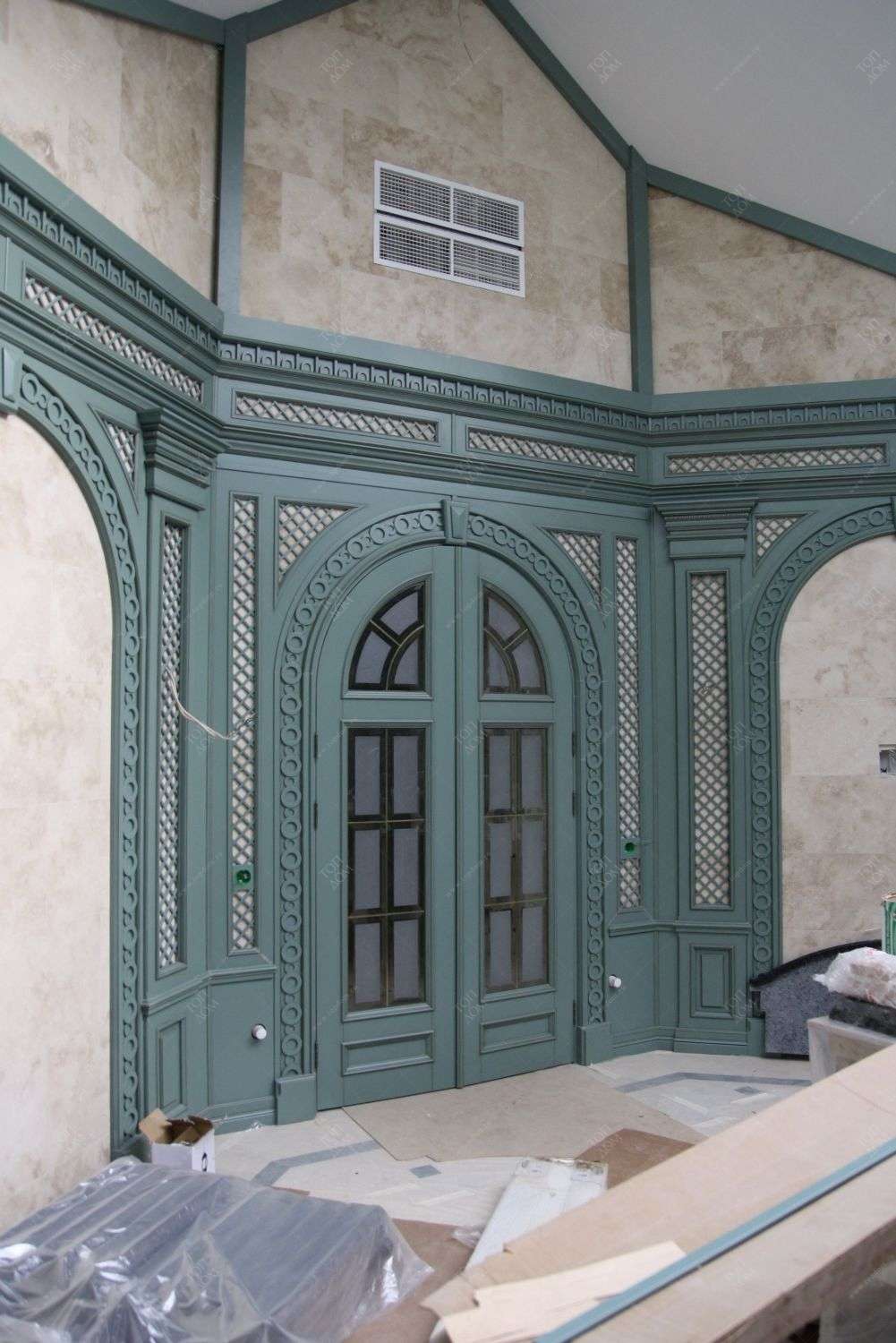- разнообразие элементов из древесины позволяет оформлять в едином стиле стены, дверные портала, оконные откосы.
