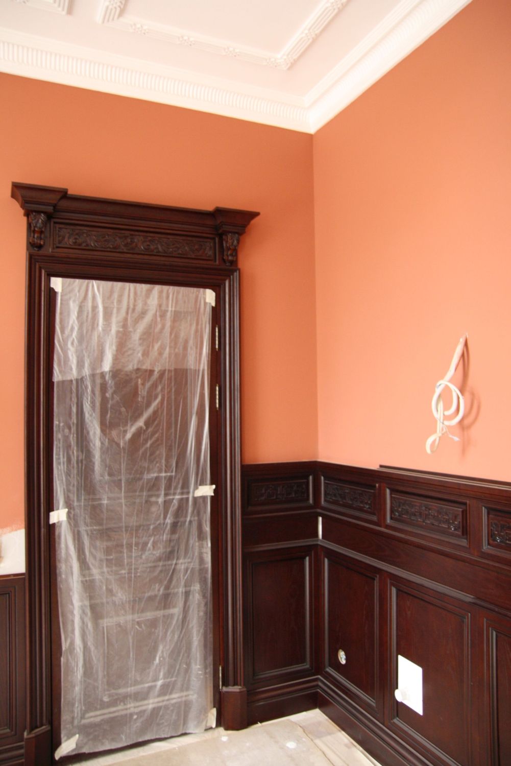 - крепление плинтусов внизу и потолочных карнизов;