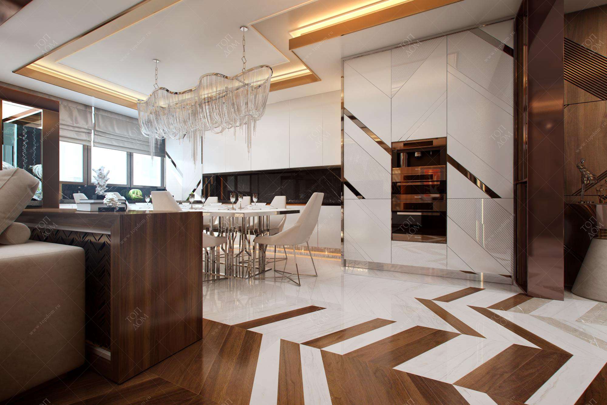 Авторский дизайн интерьера и отделка квартир элитного уровня – специализация компании «ТопДом». В каждом проекте – от первоначальной концепции до финальных этапов ремонта под ключ – мы реализуем продуманные и технически грамотные планировочные, инженерные и декораторские решения. Наши интерьеры подчеркивают великолепие дорогих натуральных материалов и хороший вкус владельцев апартаментов.