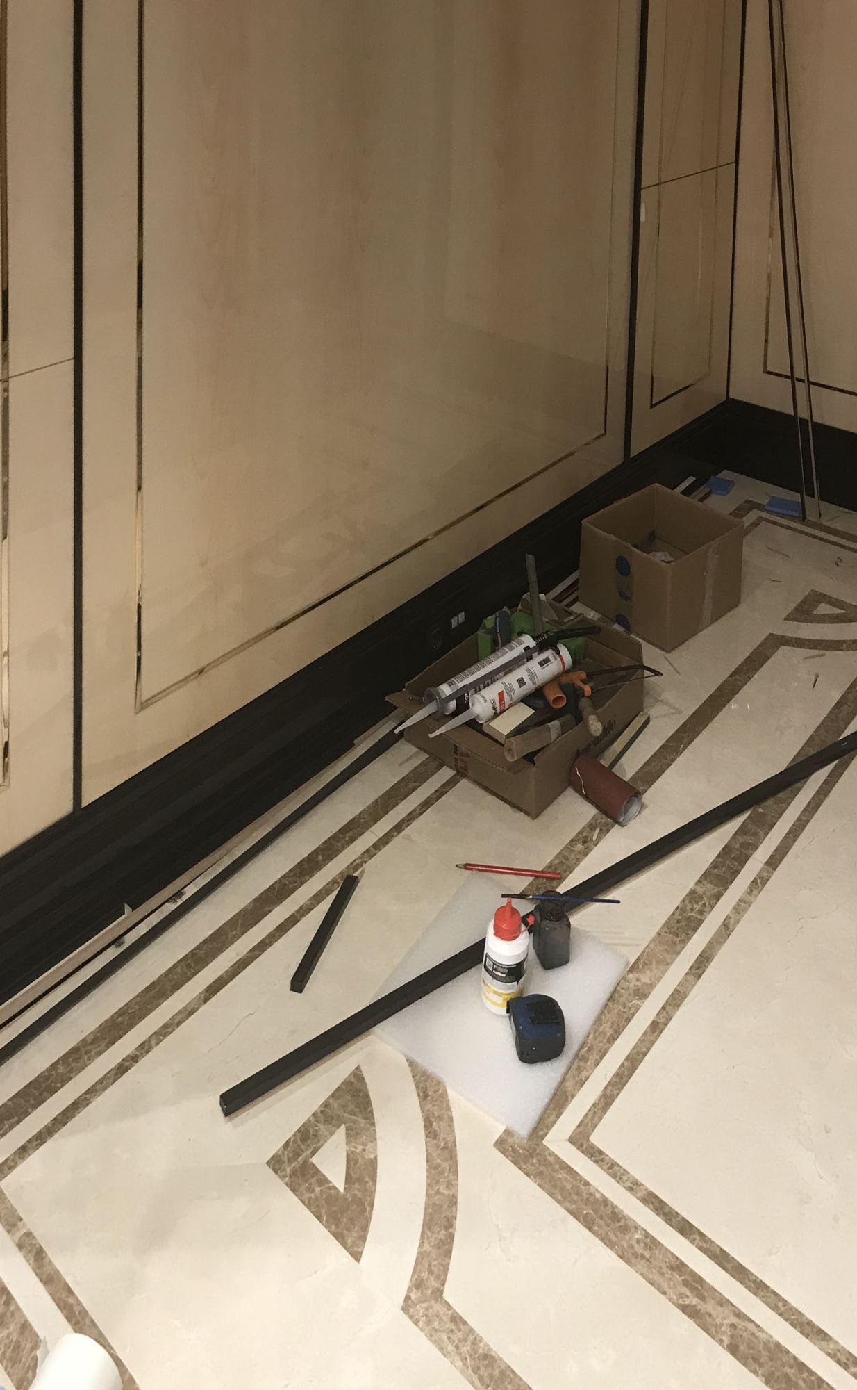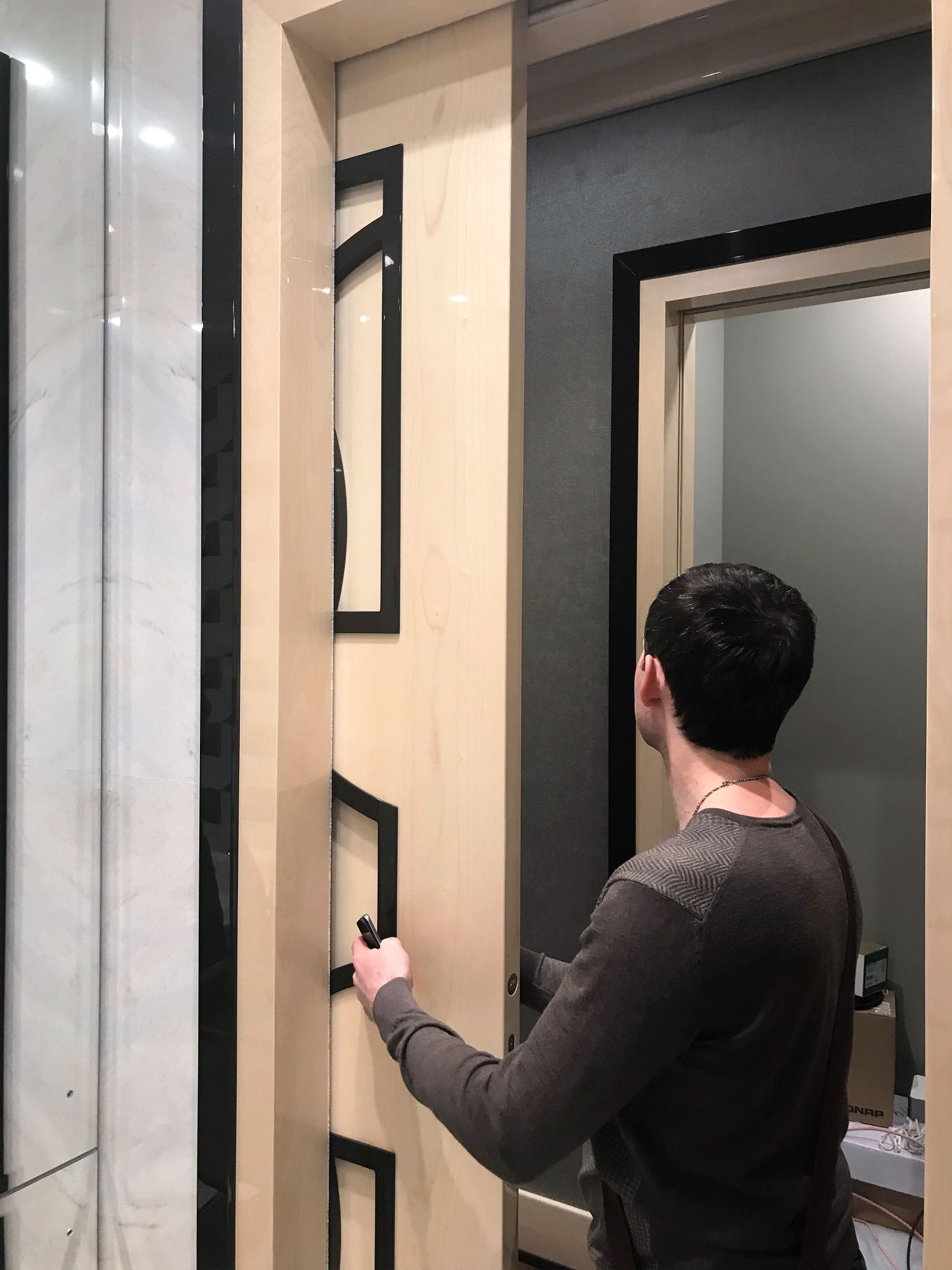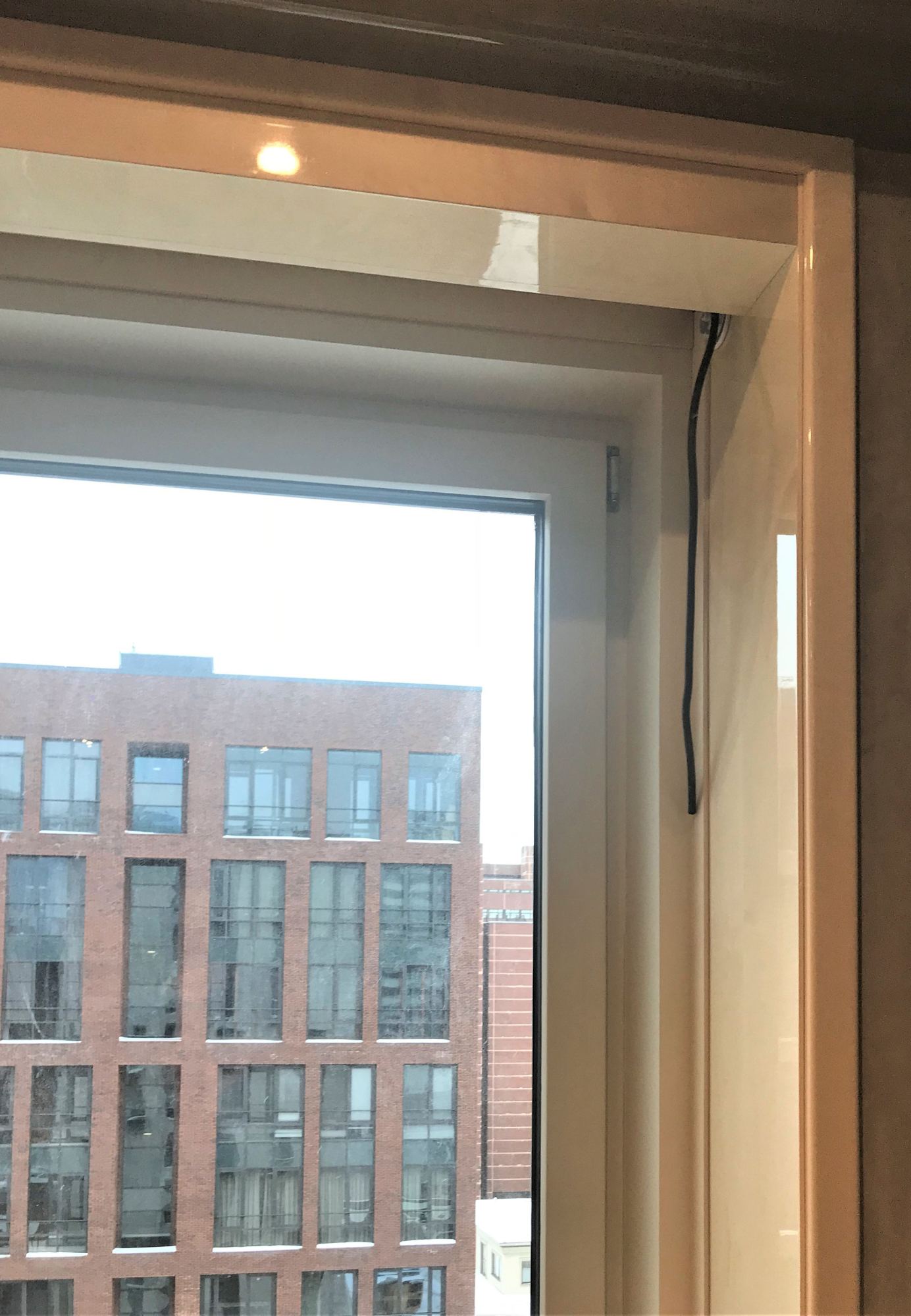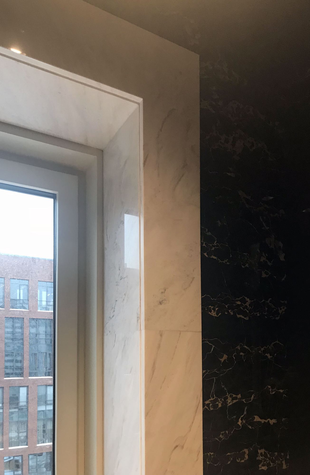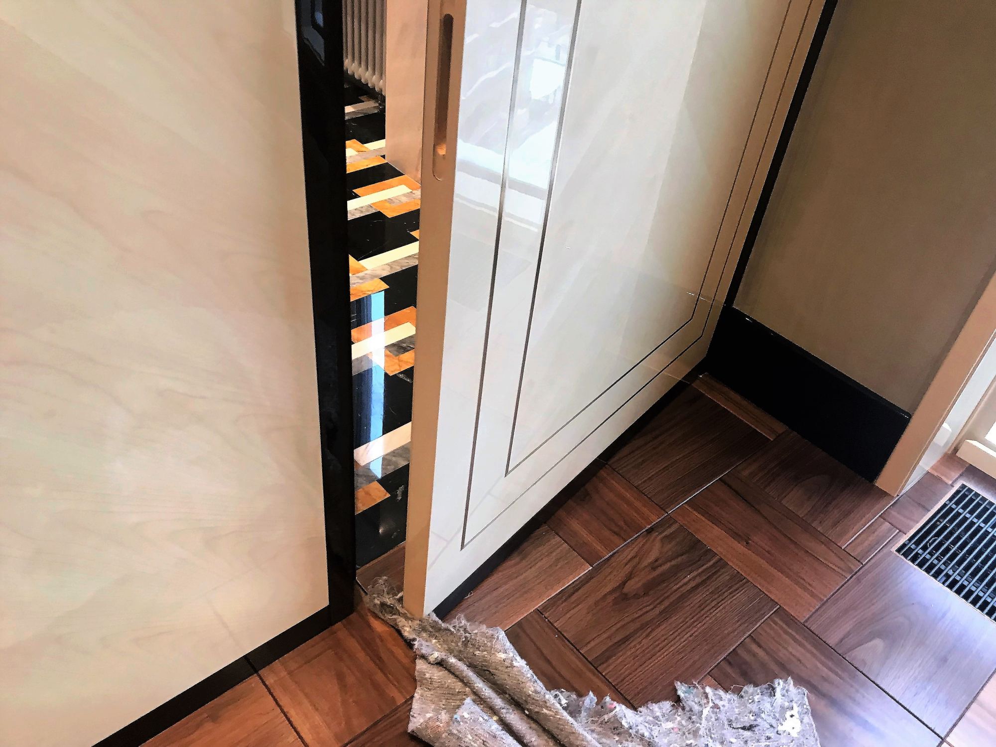- глянцевым панелям оттенка слоновой кости в коридоре;