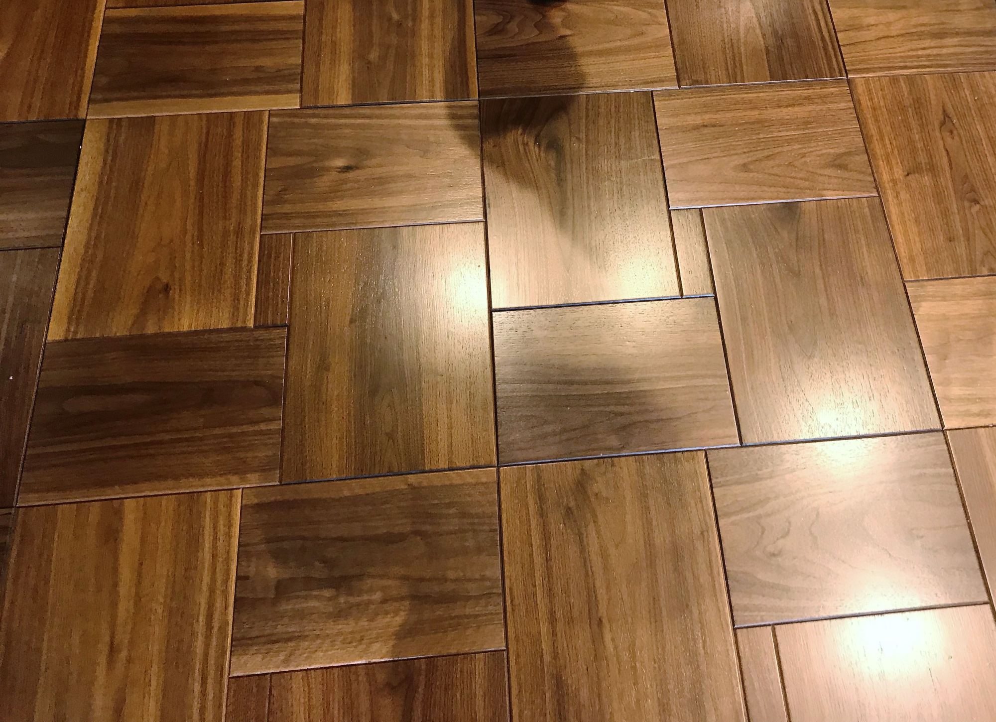 Паркет орехового оттенка с крупной плетеной раскладкой создает красивый естественный фон в общественной части: холле, коридорах, на кухне. Его благородные коричневые тона смотрятся тепло и позволяют ярче заиграть цветовым компаньонам: