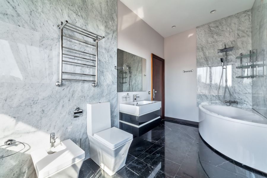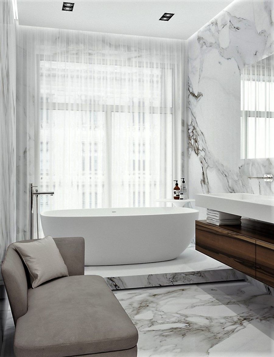 Красивый дорогой ремонт квартиры или дома предполагает профессионально выполненные черновые работы (стяжку, тепло-, звукоизоляцию) и монтаж качественного финишного напольного покрытия. Натуральная доска, паркет, премиальный ламинат, керамогранит, мрамор не просто долговечные материалы (при условии должного ухода), но и сильная декоративная составляющая оформления. Один из трендов дизайна интерьеров – сплошная мраморная облицовка в ванных комнатах.