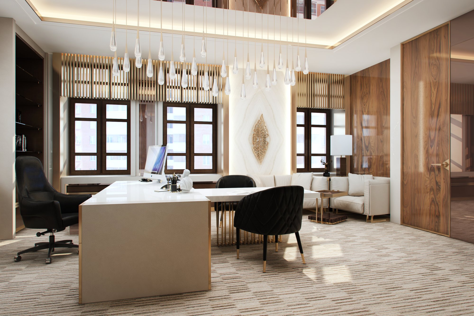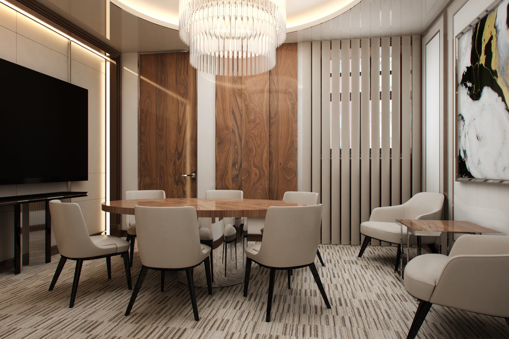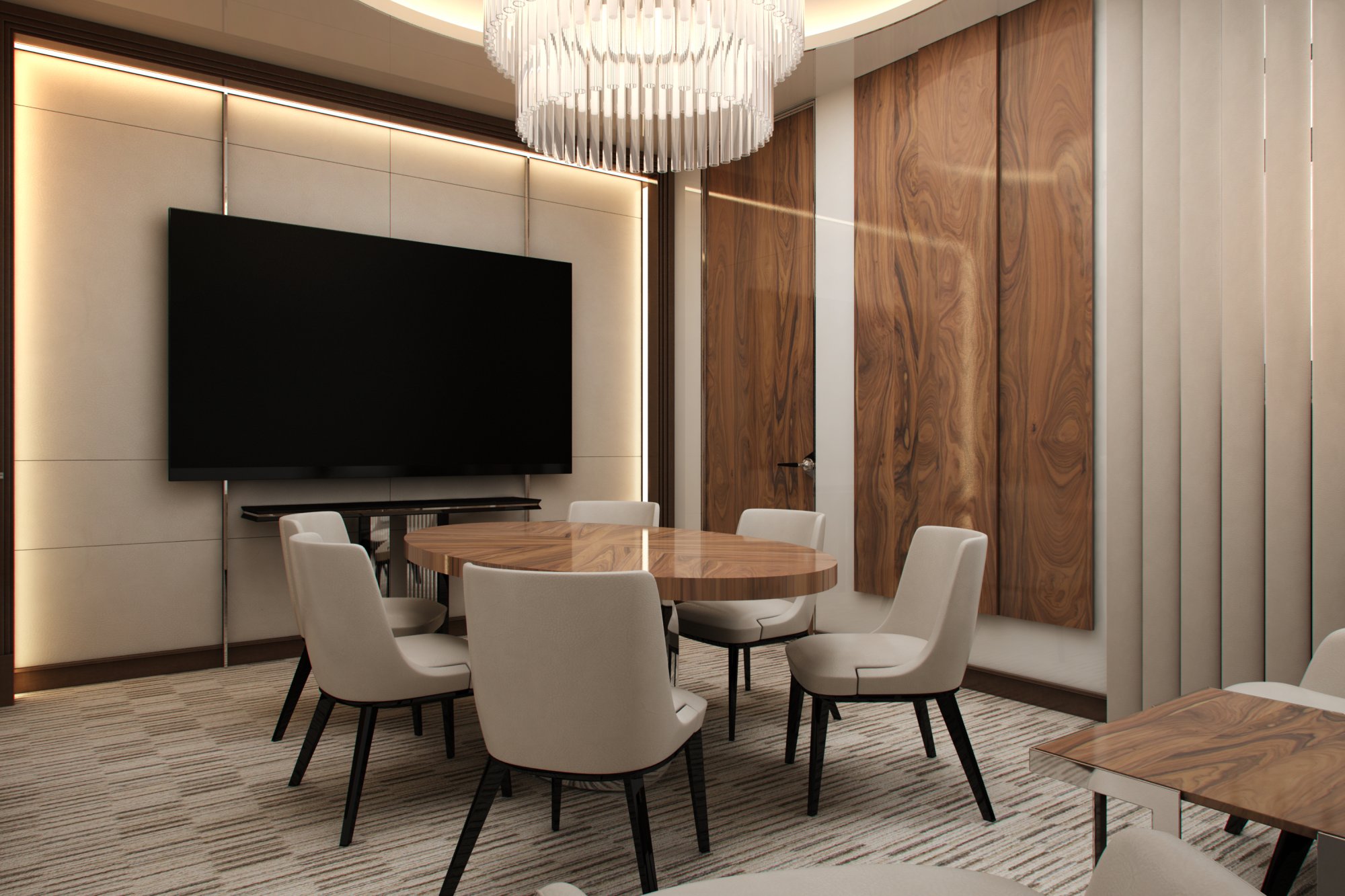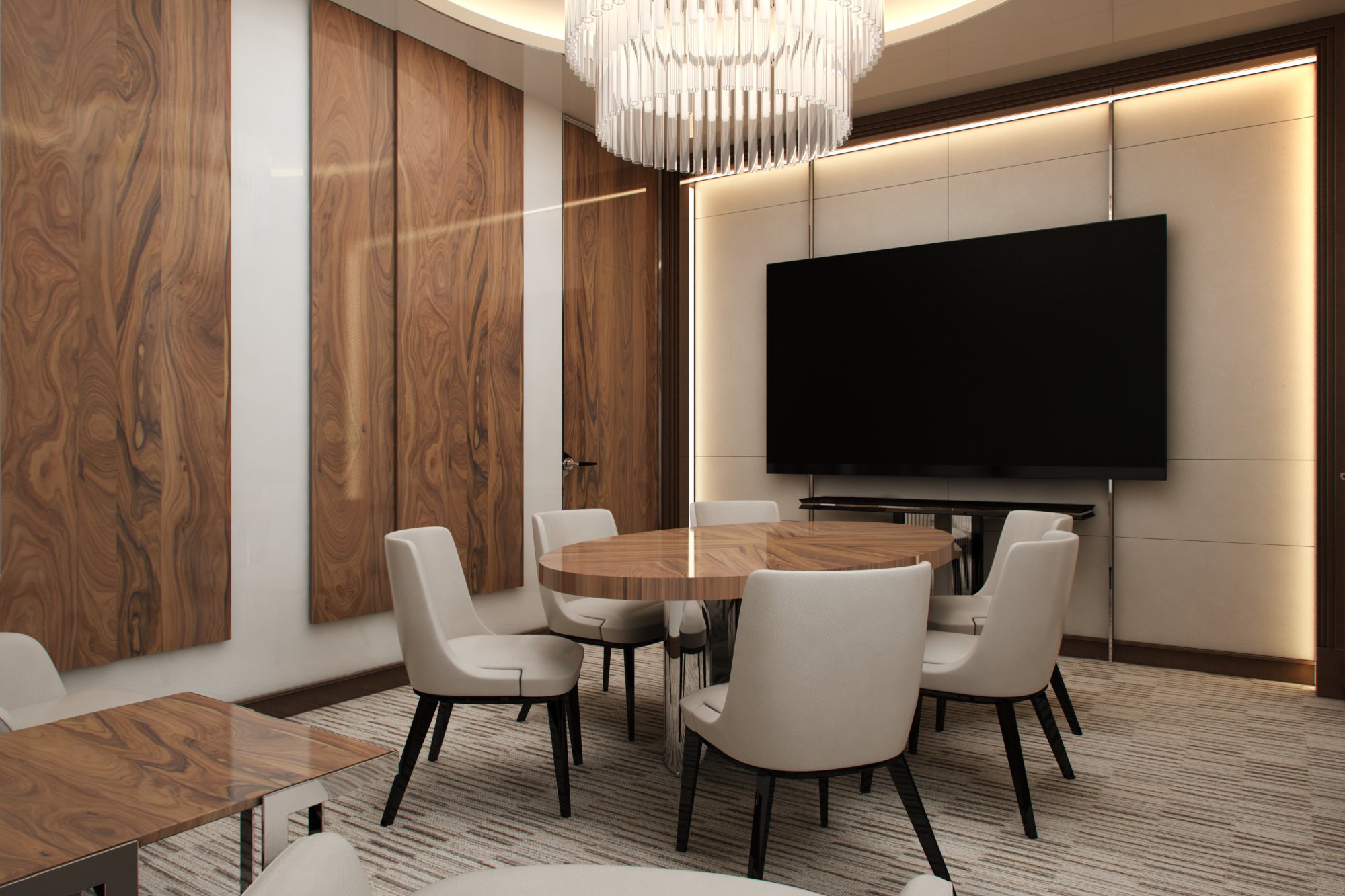 Большая люстра в дизайне переговорной