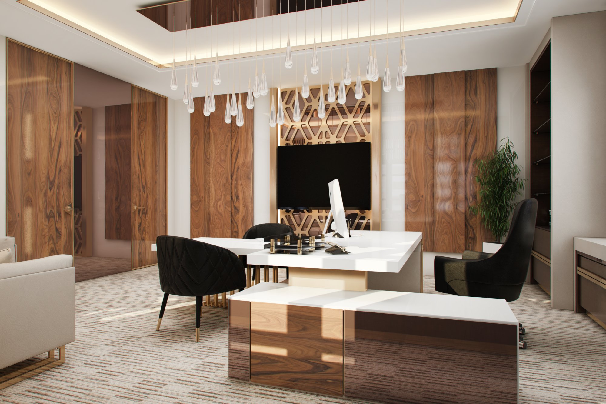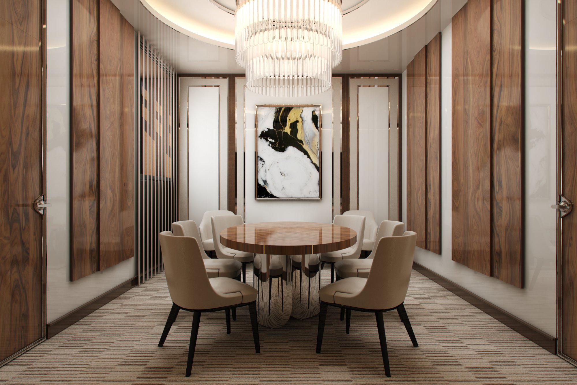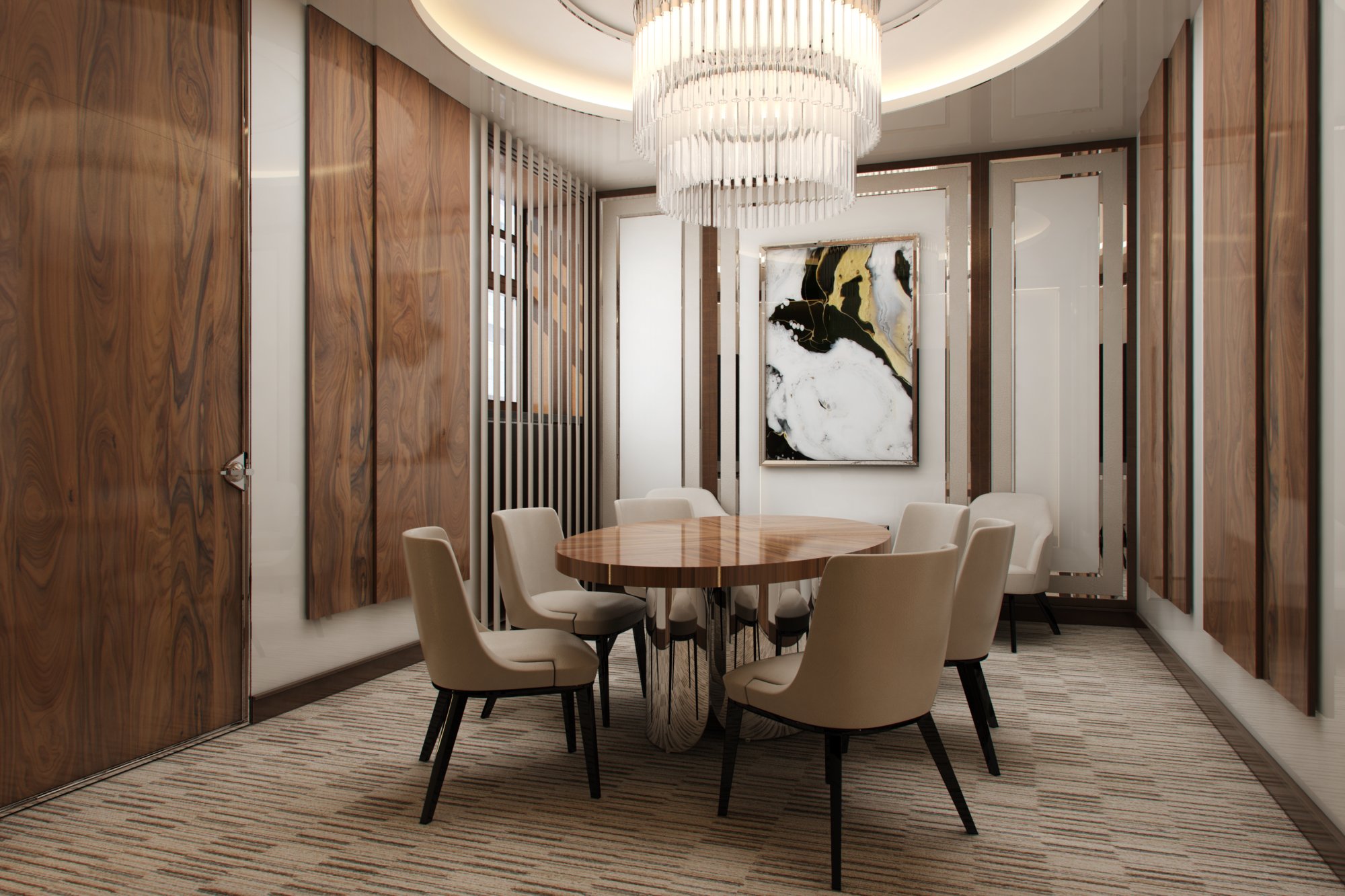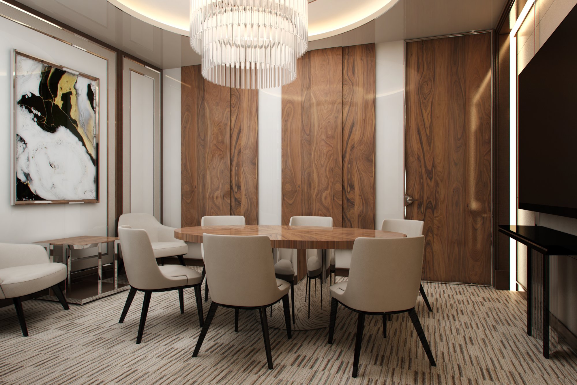 Большая люстра в дизайне переговорной