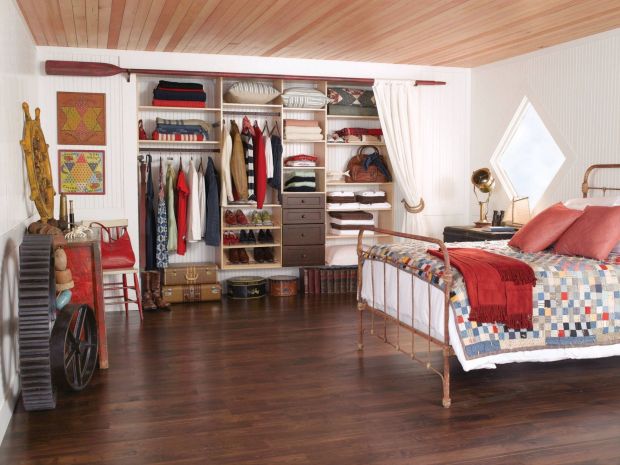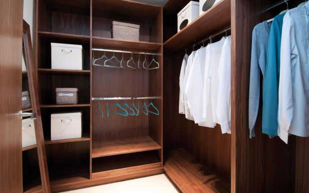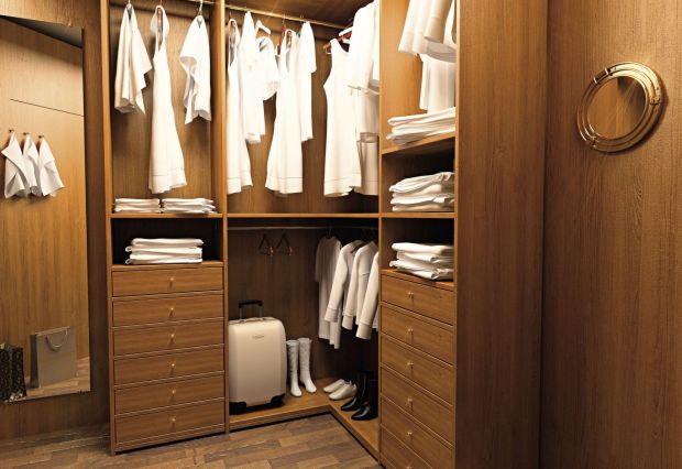 Помещение для одежды обустраивают в углу спальни, прихожей или детской. Проектом гардеробной предусматриваются компактные системы хранения, так как этот вариант планировки подходит для небольших площадей.