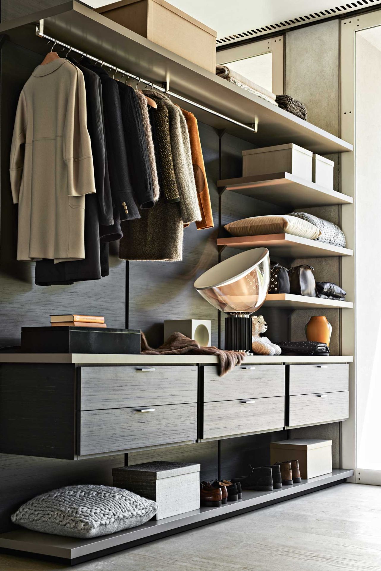 - Как включить в дизайн гардеробной открытые и закрытые системы хранения?