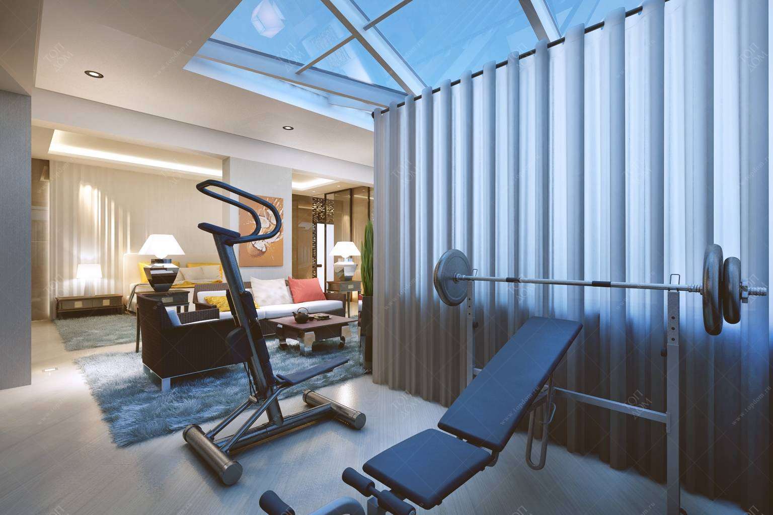 Когда не получается оформить спортзал в отдельном помещении, зону для тренажеров можно организовать в гостиной, спальне (поближе к оконным проемам). В гостиной границей выступит, к примеру, барная стойка: спортивное оборудование располагается перед окном, а в противоположной части комнаты – место для отдыха. В спальне такую роль выполнит ширма.