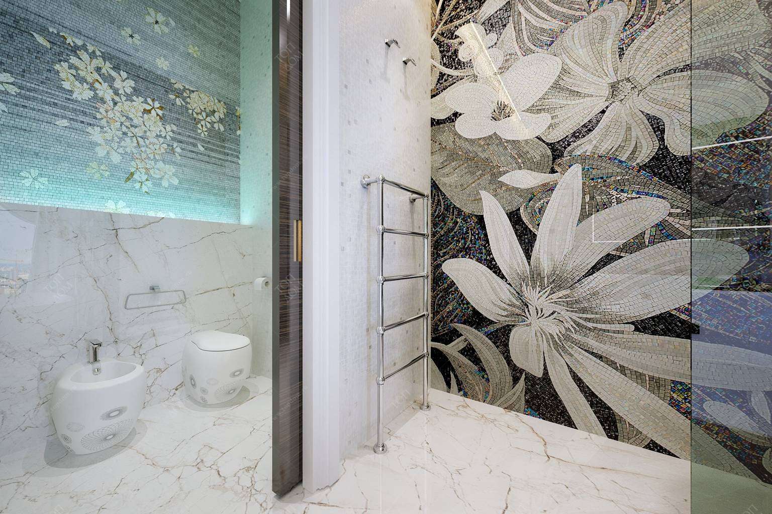 Для облицовки и выделения отдельных участков дизайн туалетной комнаты использует: