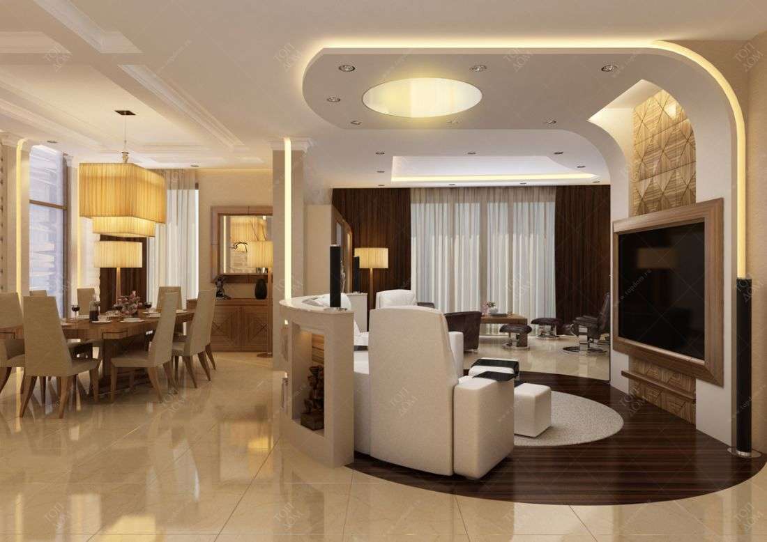 Зонирование при совмещенной гостиной-кухне